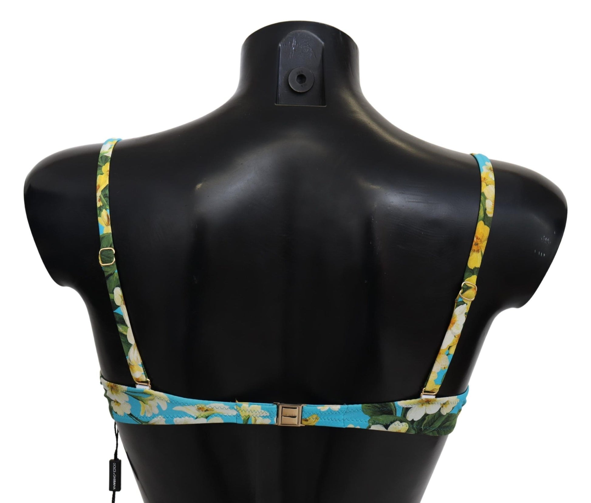 Step into the sunshine with poise in this stunning light blue floral bikini top by Dolce & Gabbana. Fresh from their latest collection, this piece promises uncompromised style and comfort, making it an essential for your beachside escapades. Crafted from a premium blend of materials for the perfect fit, it’s detailed with the iconic brand logo, ensuring a touch of luxury with every wear.
