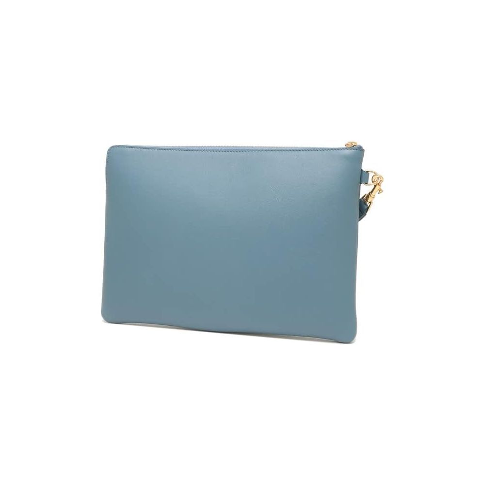 Indulge in the luxury of a sleek denim blue calfskin leather clutch, a timeless accessory designed to elevate your evening ensemble. With its iconic logo embossed on the front, this clutch exudes elegance. It boasts a handy removable strap and a secure zipper closure to keep your valuables safe. Compact yet spacious, it measures a convenient 25×18 cm, perfect for those essential items.