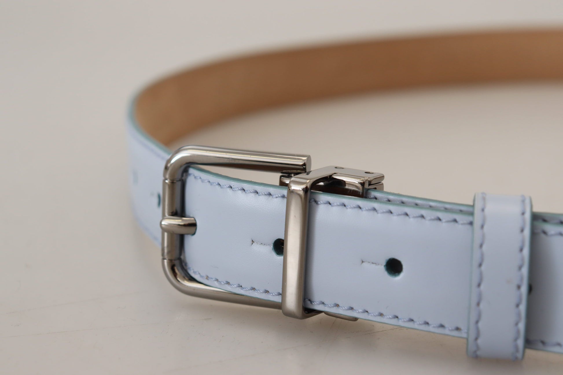 Exude sophistication with this pristine light blue belt from the renowned Dolce & Gabbana. Expertly crafted in Italy with top-quality leather, this accessory is guaranteed to uplift your ensemble with its stunning metal buckle closure and distinctive charm.