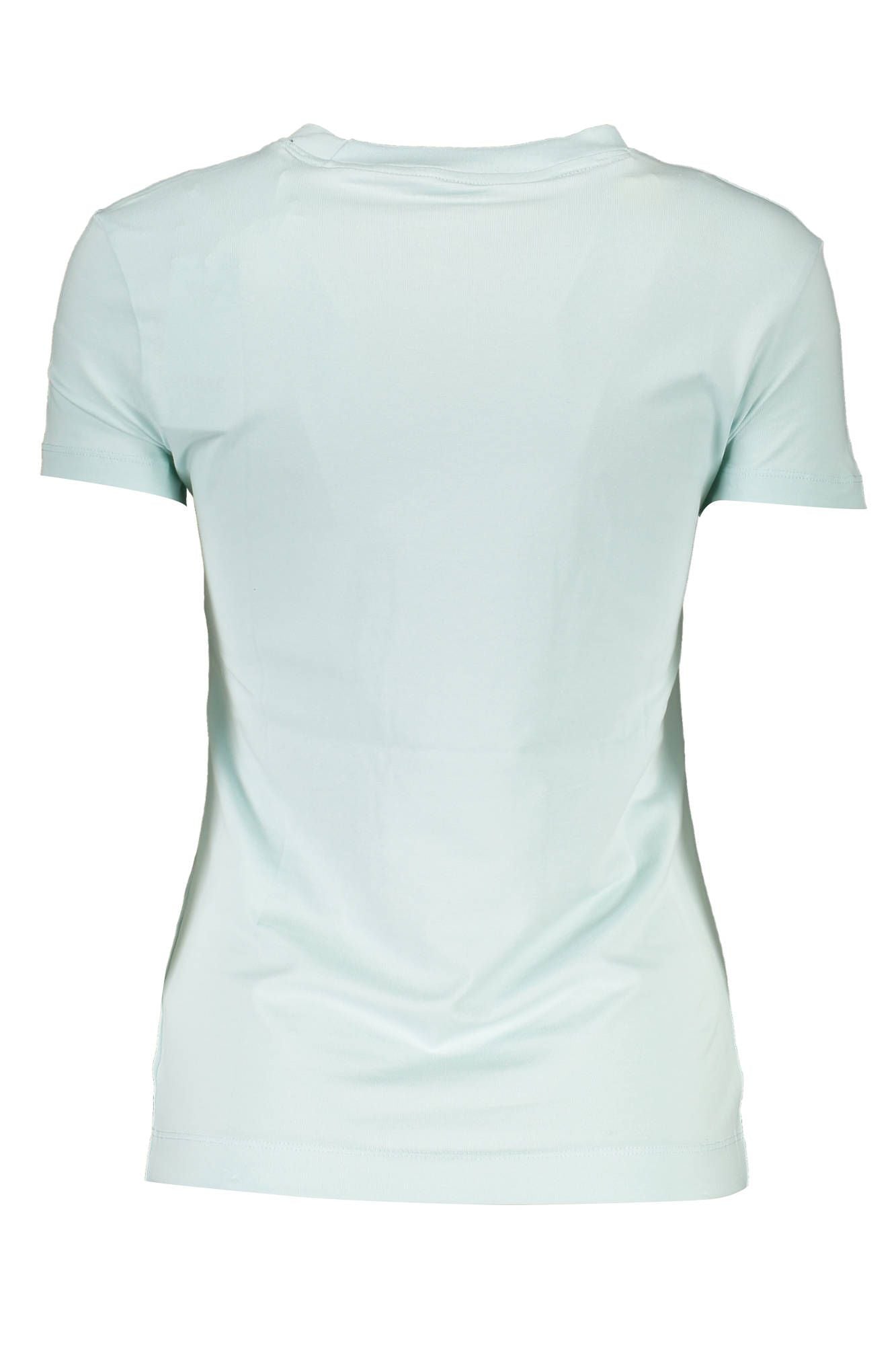 Emanate casual sophistication with this stunning light blue t-shirt from Guess Jeans. Perfect for creating a relaxed yet polished look, this short-sleeve top is an essential piece for your wardrobe, crafted from 95% organic cotton for a comfortable and eco-friendly feel. Adorning the front is a classy print and the distinctive Guess Jeans logo, making it a true statement piece.