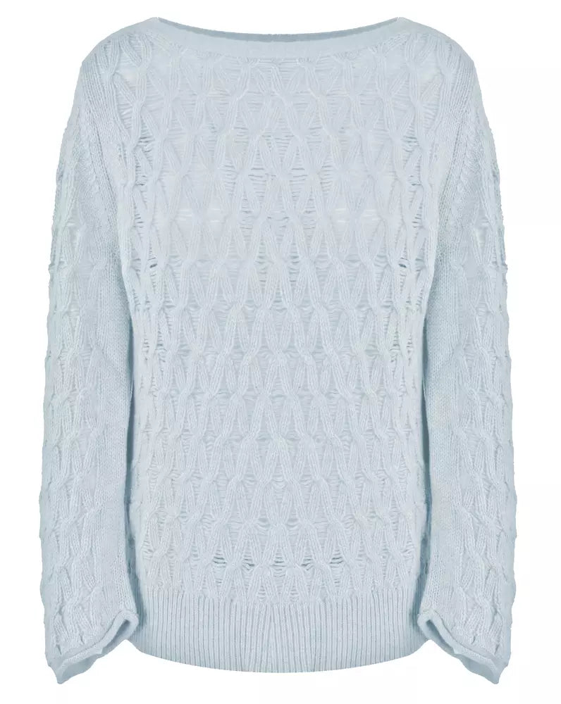 Chic Boat Neck Wool-Cashmere Sweater in Rhombus