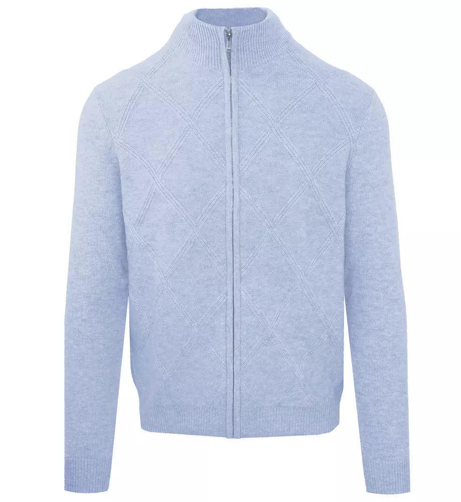 Elegant Diamond Pattern Wool Cashmere Cardigan