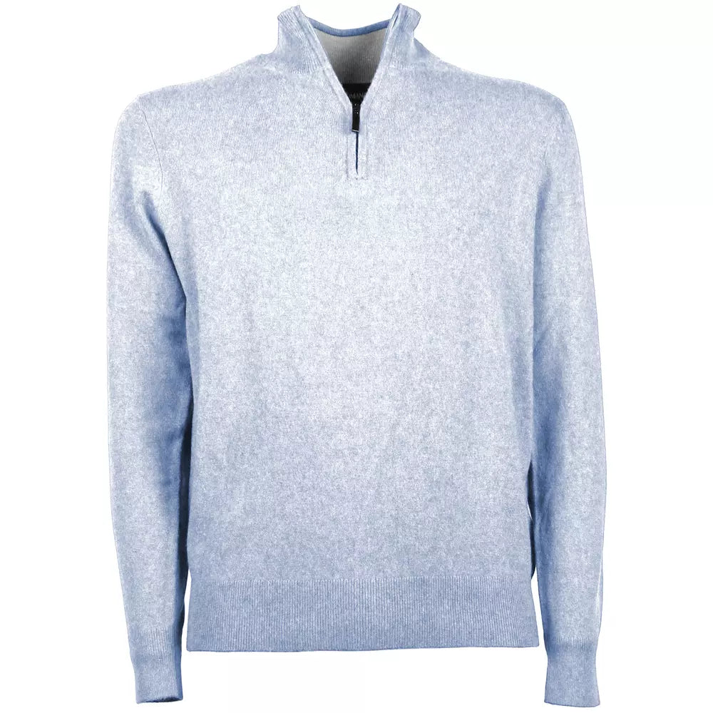 Experience the epitome of comfort and style with this exquisite turtleneck sweater. Crafted from a sumptuous blend of wool and cashmere, the sweater offers a soft touch and unparalleled warmth. The chic light blue hue complements a variety of outfits, making it a versatile addition to any discerning gentleman’s wardrobe. This Italian-made piece features a convenient half-length zip, allowing for ease of wear and a touch of modern sophistication.