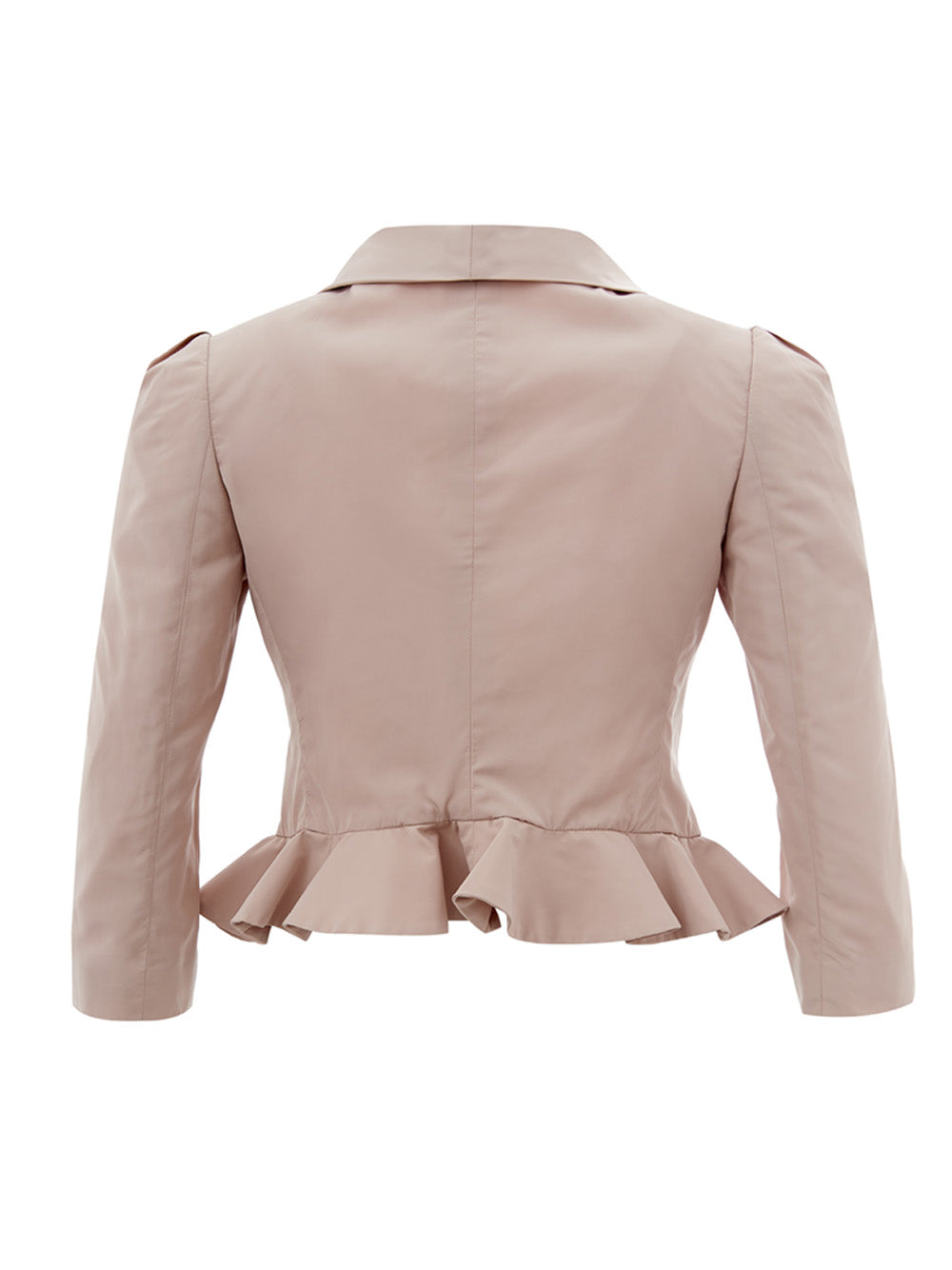 Discover elegance with the Lardini Light Pink Ruffle Jacket, a blend of timeless style and modern femininity. This brand new, tagged piece is a must-have for those who appreciate sophisticated design and impeccable Italian craftsmanship. A normal fit ensures comfort, while the ruffle detail adds a touch of romantic charm, making it a perfect choice for both casual and formal occasions.