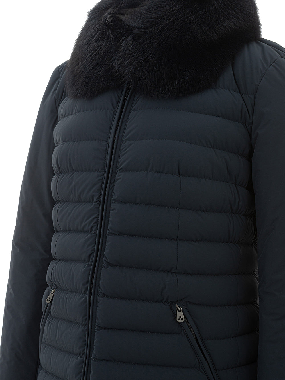 Experience the epitome of winter elegance with our ‘Peuterey’ Long Quilted Coat, a statement piece that’s as stylish as it is cozy. This exquisite coat features plush fur detail on the neck for a touch of luxury, and it is meticulously designed to elevate your cold-weather wardrobe. With a sleek blue hue, it offers a front closure with a concealed zip and comes with practical inner pockets. The detachable neck with snap buttons ensures versatility, while the brand’s logo on the sleeve adds an air of exclusivity. Embrace the blend of sophistication and comfort with this must-have outerwear.