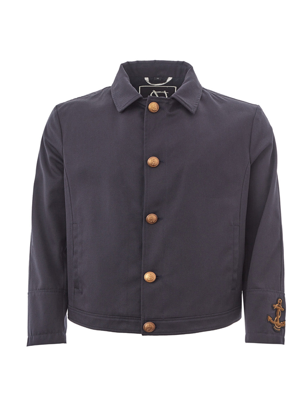 Discover the epitome of nautical sophistication with our chic blue marine style jacket, a testament to refined taste and Italian craftsmanship. Perfect for anyone seeking unparalleled elegance and functionality. Enable your wardrobe to make a sea-worthy statement with a slim fit cut, front closure adorned with bronze-effect buttons, and practical side pockets.