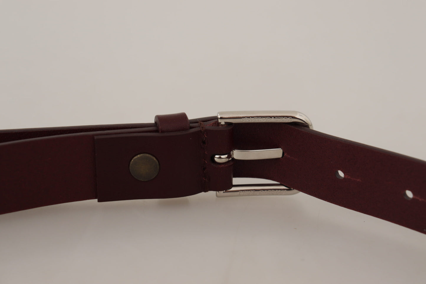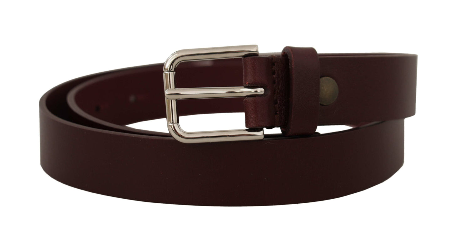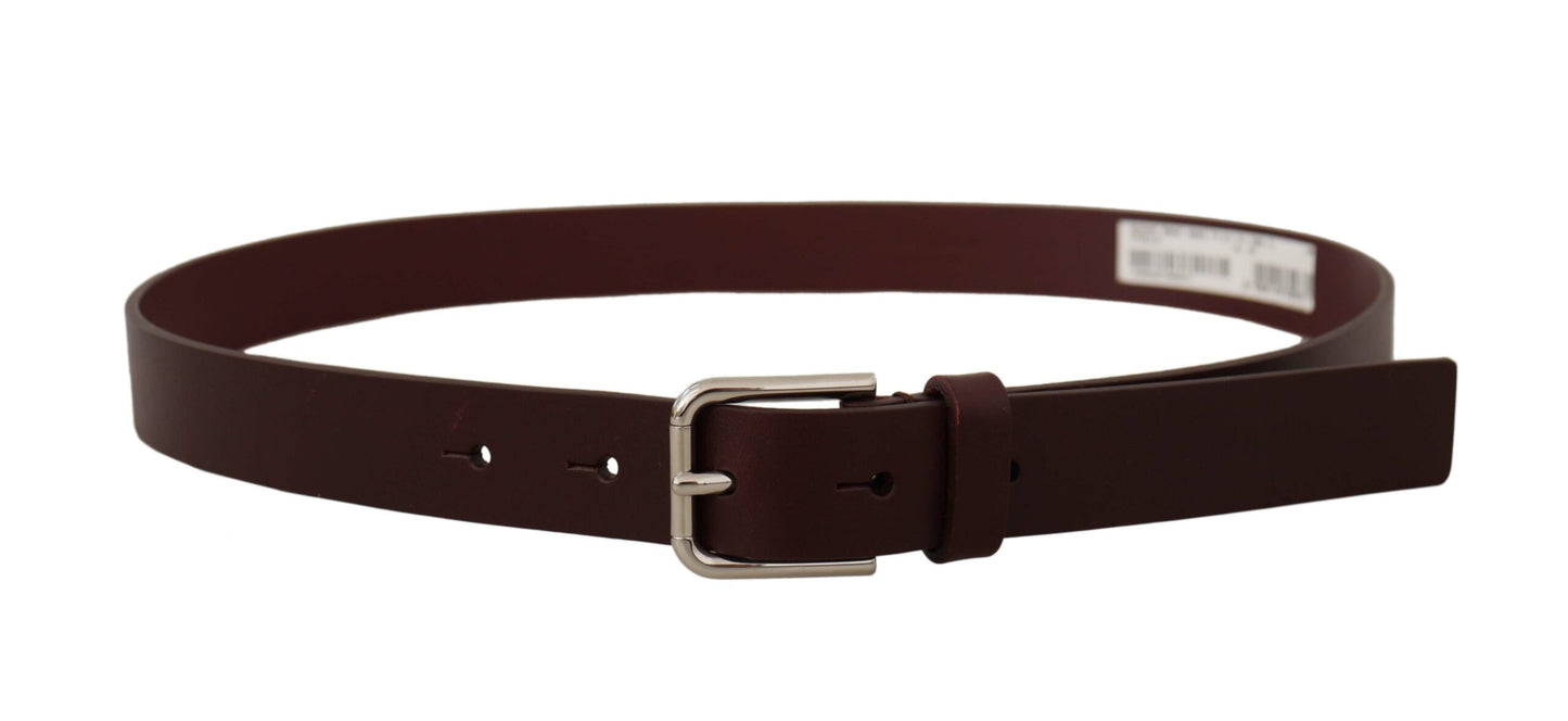 Accentuate your silhouette with this exquisite Maroon belt from Dolce & Gabbana. Crafted from premium leather, this accessory adds a touch of luxury to any outfit. Fastened with a logo-engraved metal buckle, it embodies both style and elegance. Perfectly blending functionality and Italian craftsmanship, it’s an essential piece for the discerning fashion lover.