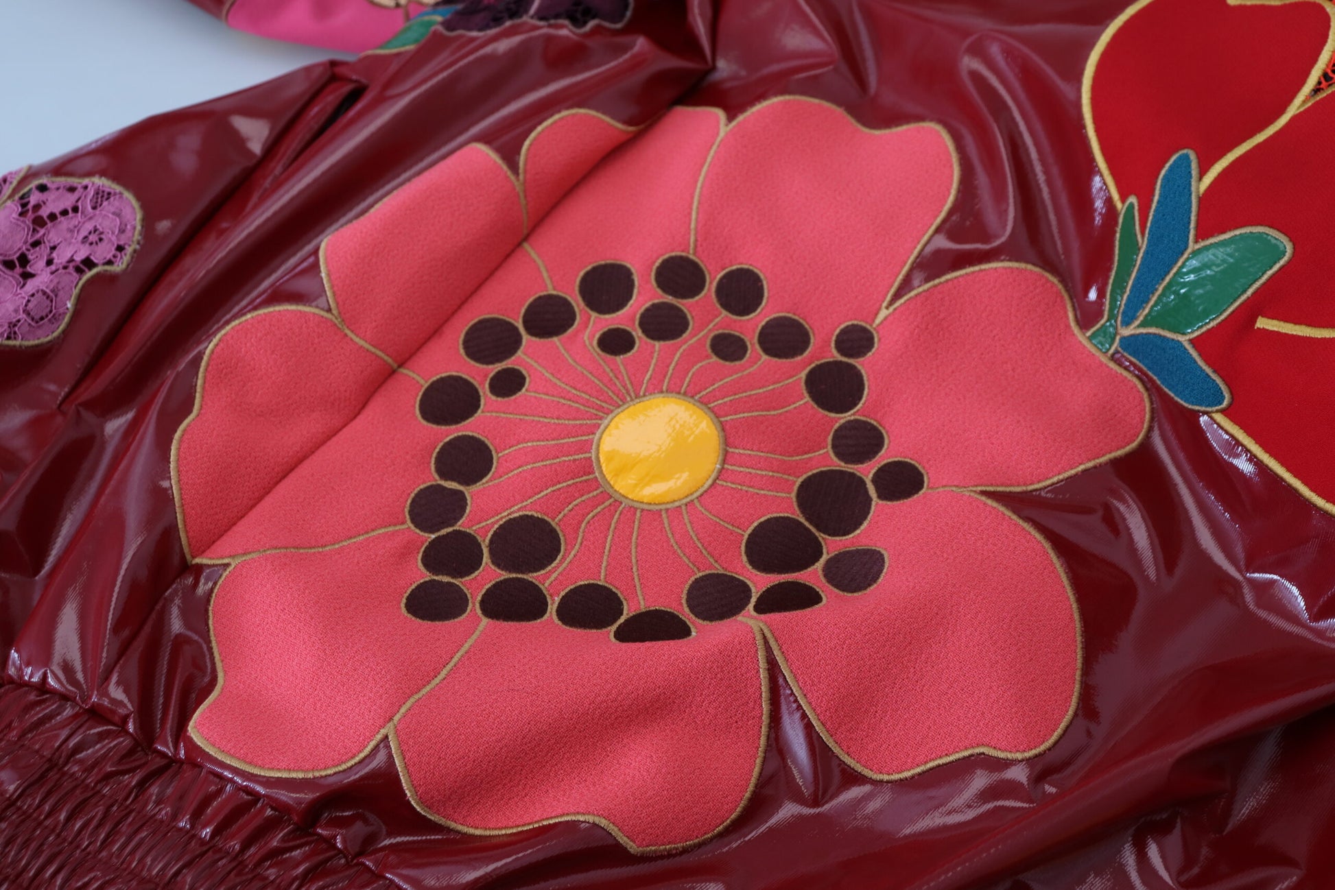 Discover the epitome of elegance with this stunning Maroon Floral Jacket from the renowned Dolce & Gabbana. This piece is more than just outerwear, it’s a statement of high craftsmanship and Italian luxury, designed to elevate any ensemble with its striking design and exceptional quality. Perfect for adding a touch of glamour to your wardrobe!