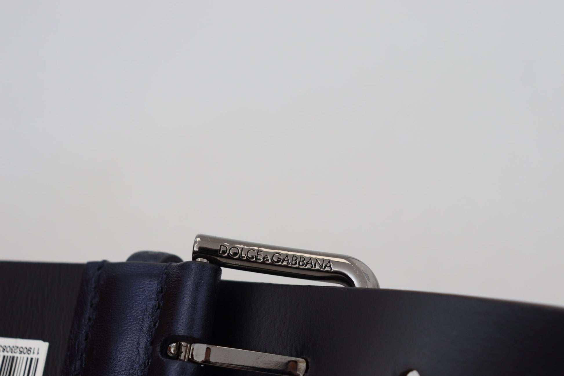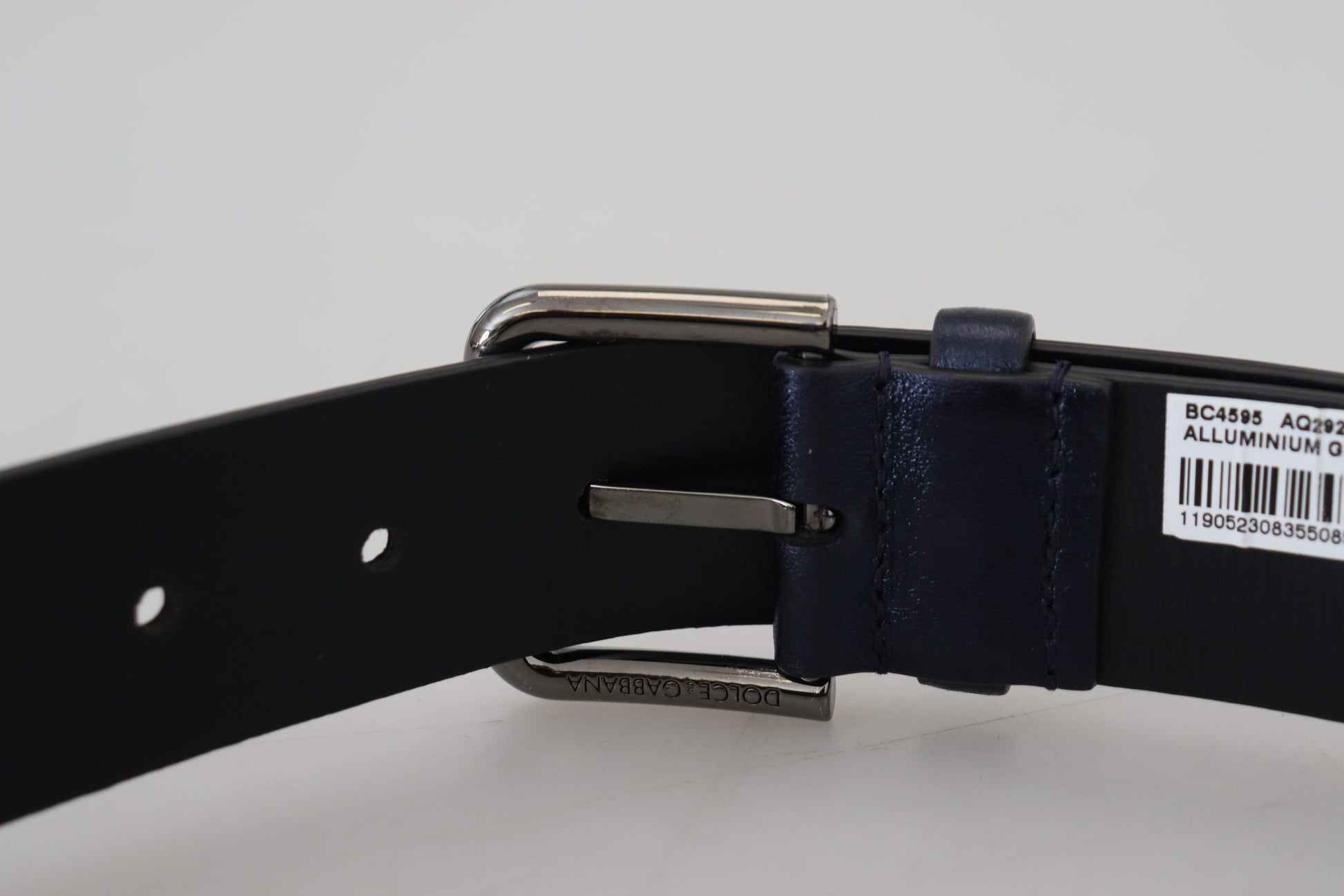 Accentuate your style with this stunning Metallic Blue leather belt from Dolce & Gabbana, crafted from the finest Italian leather. Its unique shade and high-quality metal buckle closure will add a touch of luxury and character to any ensemble.