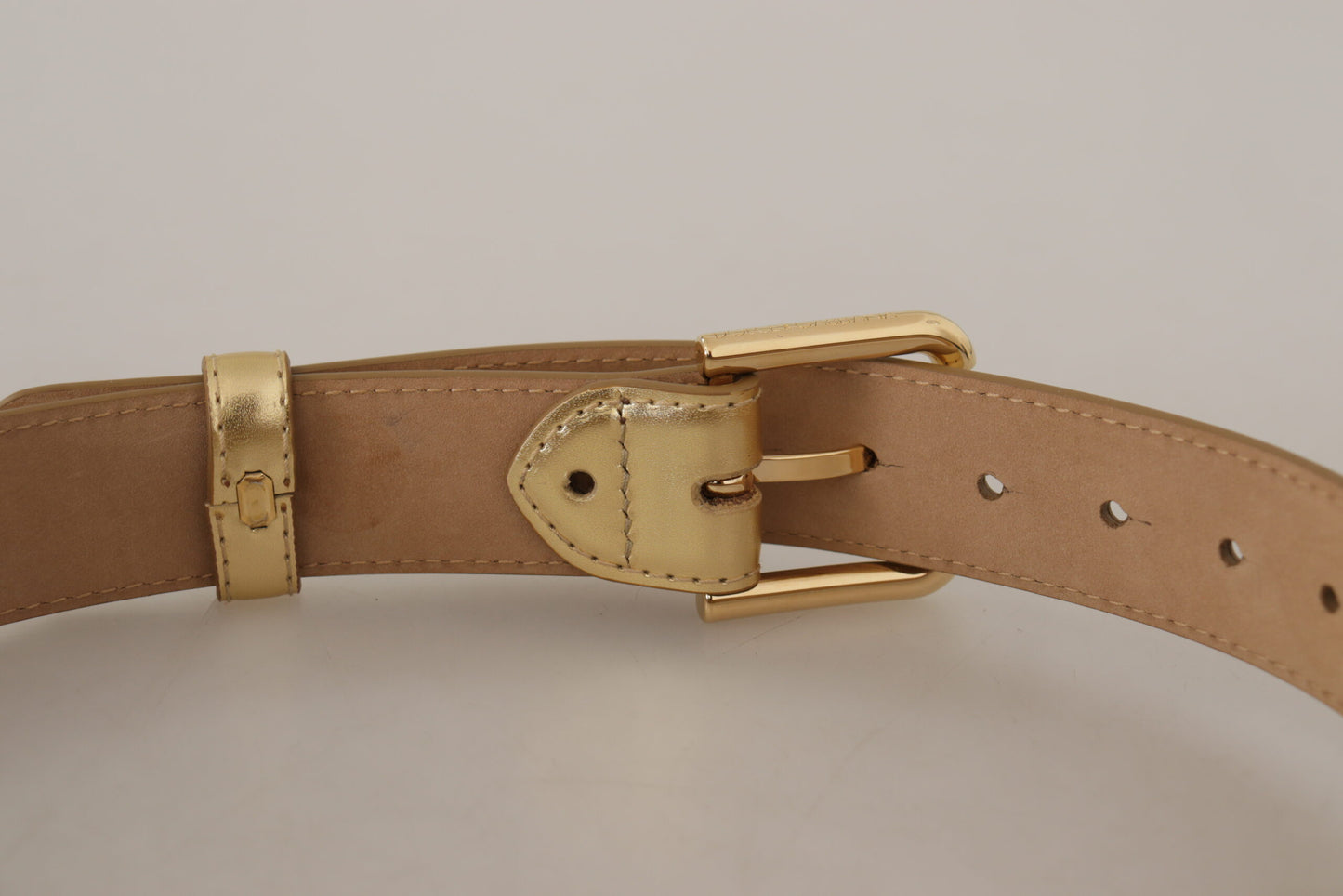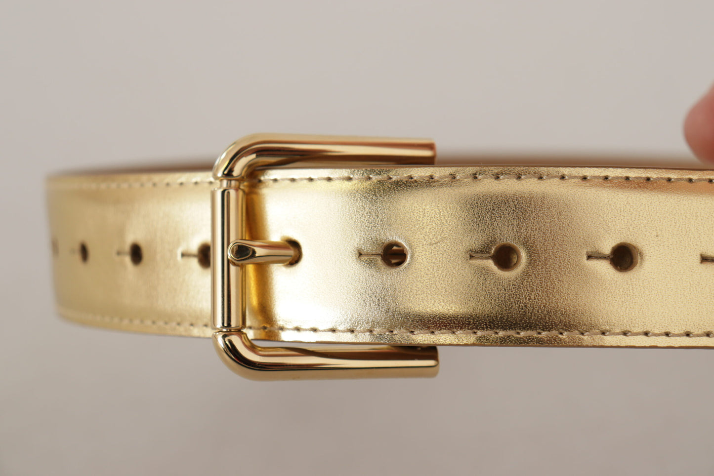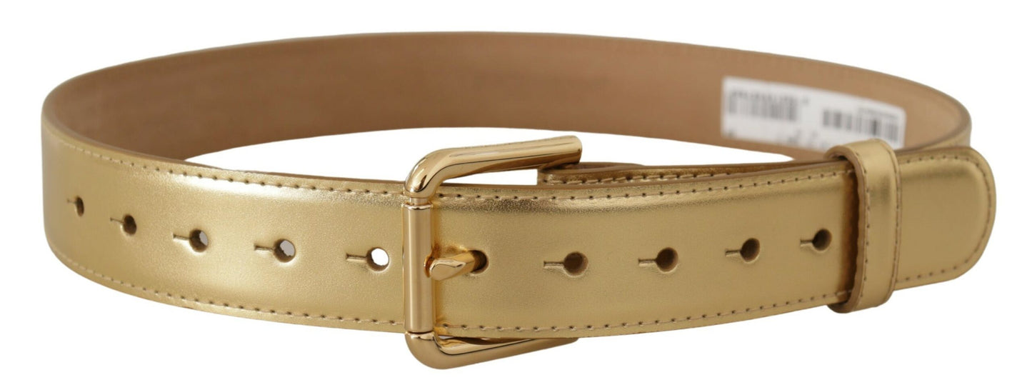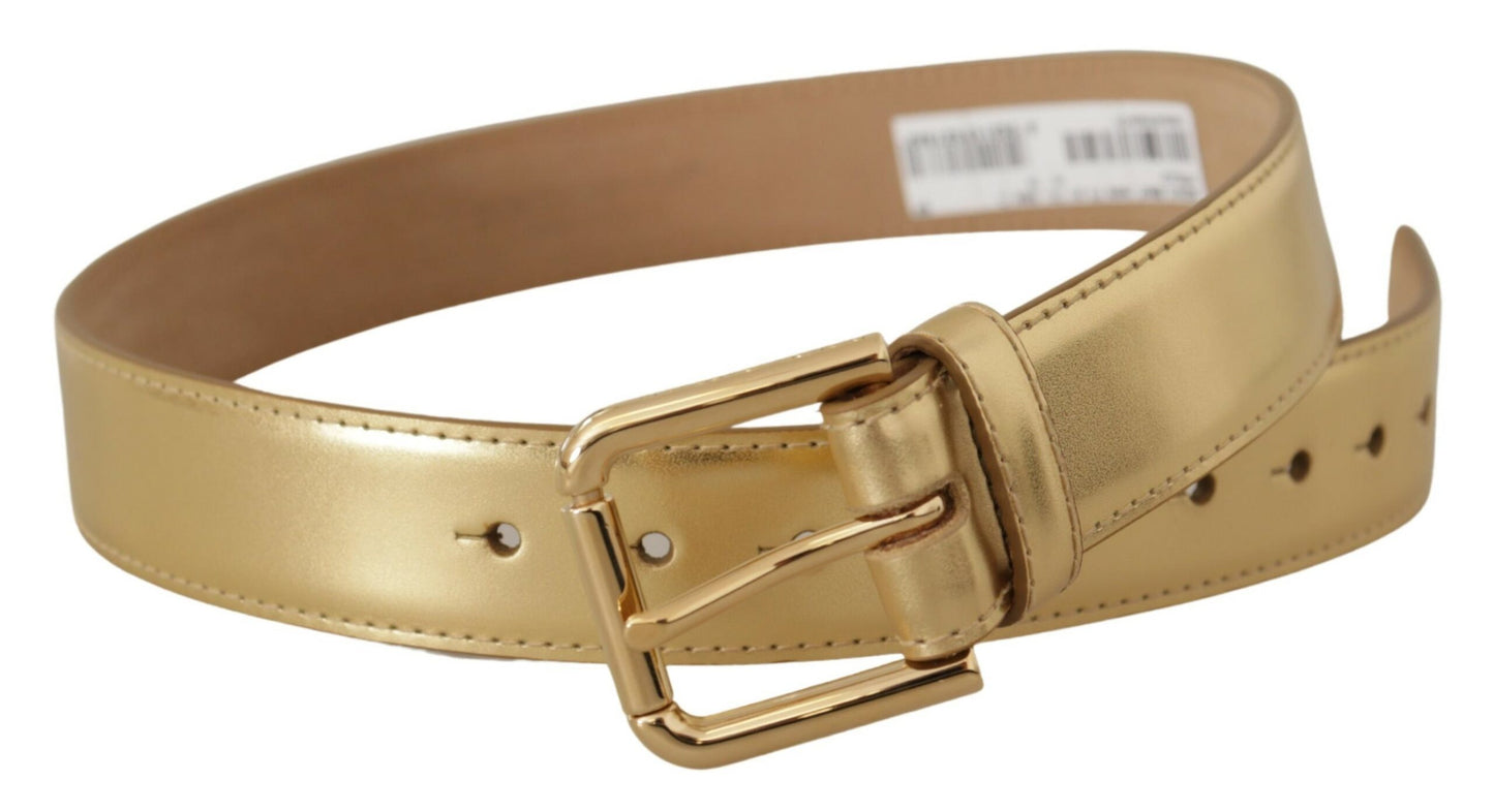 Step up your accessory game with this exquisite Dolce & Gabbana belt, newly arrived with original tags and box. Fashioned from top-notch leather, this belt gleams in a luxurious gold hue, culminating in a stunning metal buckle that proudly displays the brand’s iconic logo. This polished accessory is a significant blend of style and sophistication, sure to elevate any ensemble.