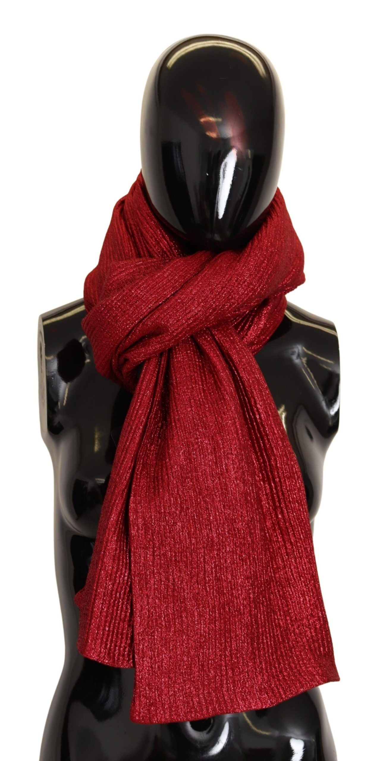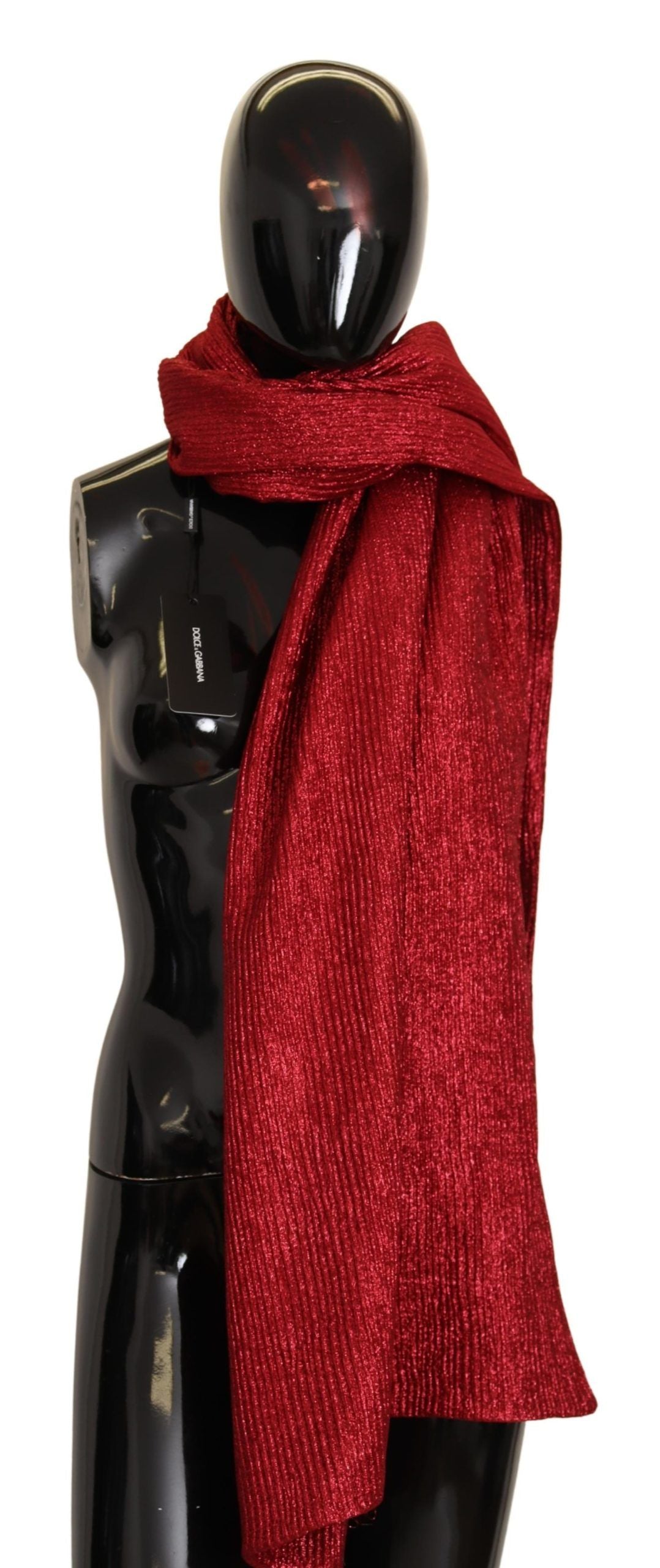 Indulge in the epitome of luxury with this Dolce & Gabbana metallic red scarf. A stunning addition to your wardrobe, this piece is crafted from a sumptuous blend of virgin wool and silk, ensuring a soft touch and elegant drape. The vibrant red hue makes a bold statement, while the subtle logo detail whispers exclusivity and high fashion craftsmanship. Made in Italy, this scarf is an accessory that promises to elevate any ensemble.