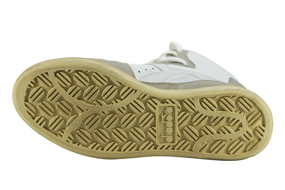 Step into iconic style with these pristine ‘Diadora Heritage’ sneakers. A perfect blend of retro design and contemporary fashion, these Mi Basket Used sneakers are a timeless addition to your footwear collection. Embracing a fashionable white and cobblestone color scheme, this pair is crafted from 100% premium leather for a luxurious feel, with a durable rubber sole ensuring comfort for all-day wear.