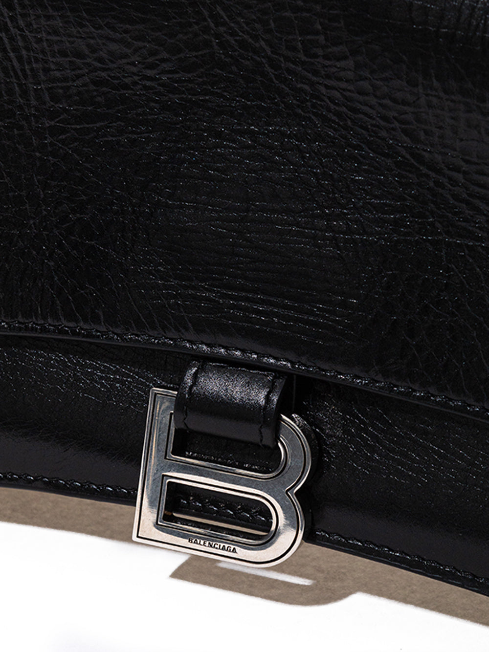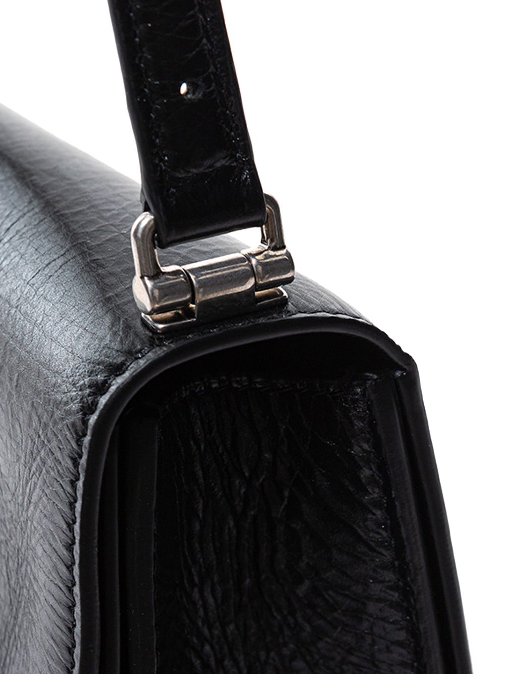 Discover the pinnacle of style with this stunning mini ‘Crush Sling’ shoulder bag. Perfect for enhancing any outfit, it boasts a sleek black leather finish that exudes elegance. Its compact size is complemented by a smart and secure front automatic button closure, alongside an adjustable strap for customized comfort. Inside, the bag is thoughtfully divided into two sections with a zipped pocket for your essentials. This piece is not just a fashion statement but a practical accessory crafted for the modern woman. A true testament to Balenciaga’s commitment to luxury and design.