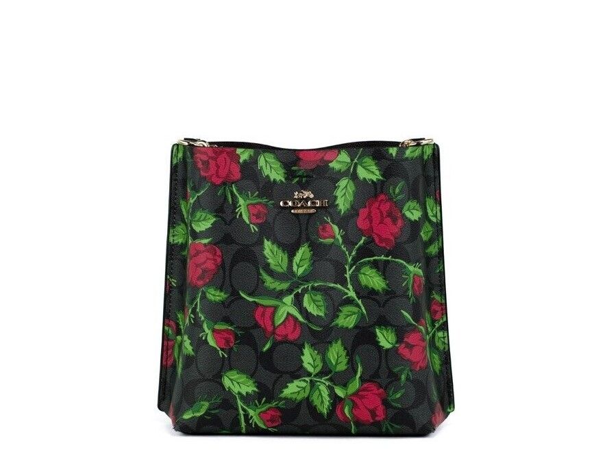Style: Coach Mollie 22 Small Fairytale Rose Bucket Crossbody Bag (Black/Red Multi)