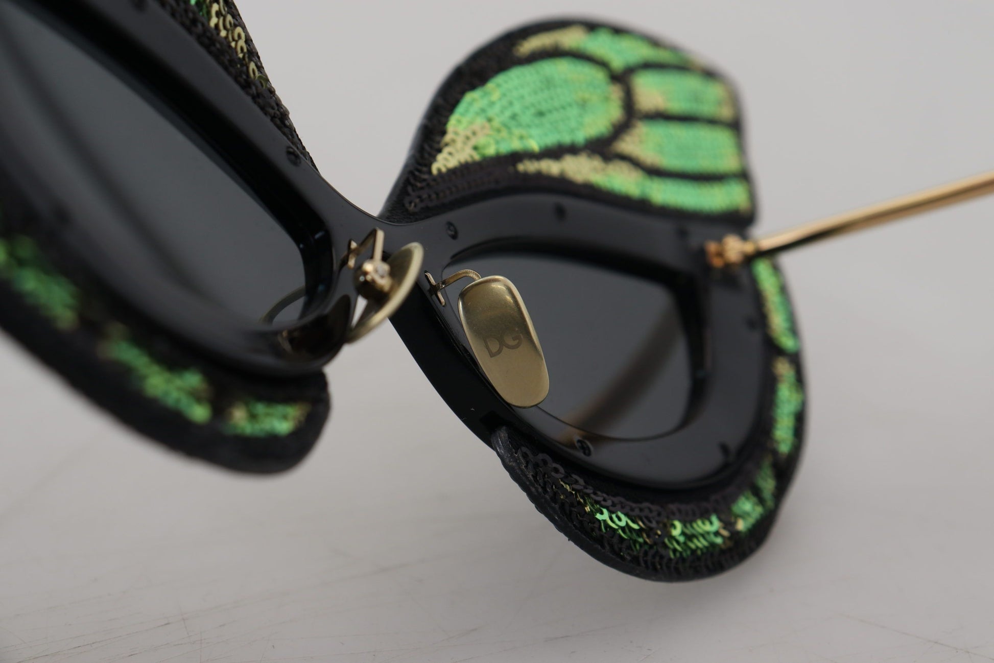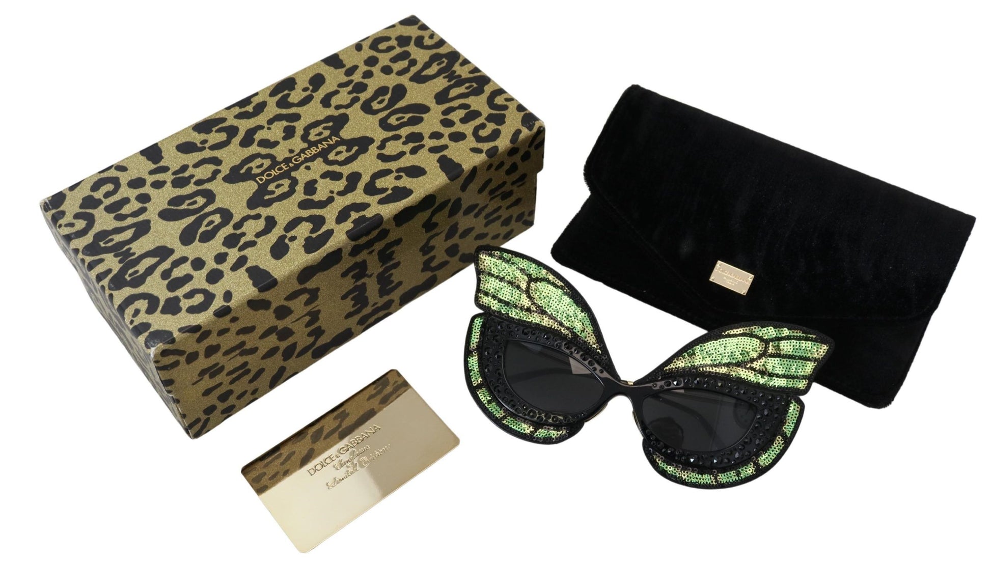 Embrace your unique style with these Dolce & Gabbana Special Edition butterfly sunglasses. These stunning shades feature an acetate frame dazzled with sequined embellishments, paired with black lenses that offer full UVA/B protection. Adorn your eyes with luxury and color, all while staying shielded from the sun.