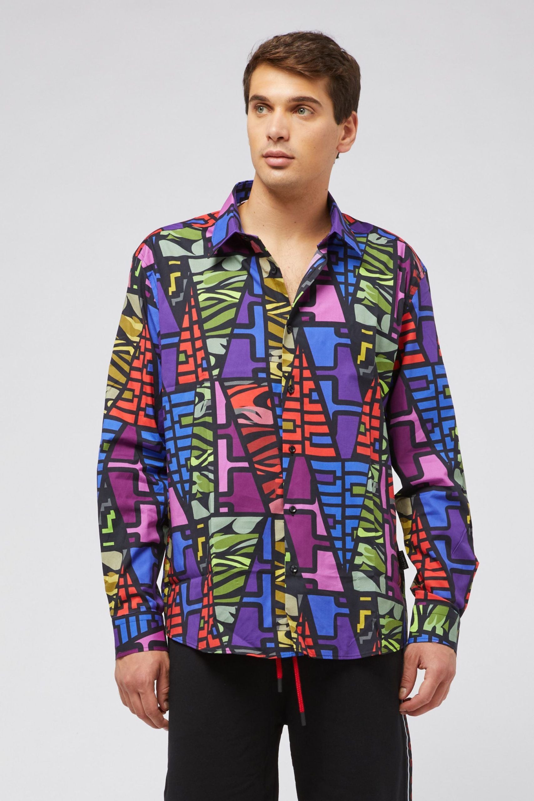 Embrace a blend of comfort and vibrant style with this eye-catching multicolored buttoned shirt, featuring long sleeves, classic collar, and button cuffs for a sharp look. Crafted with a touch of elastane, this piece from Custo Barcelona offers both flexibility and a striking aesthetic to elevate your wardrobe.