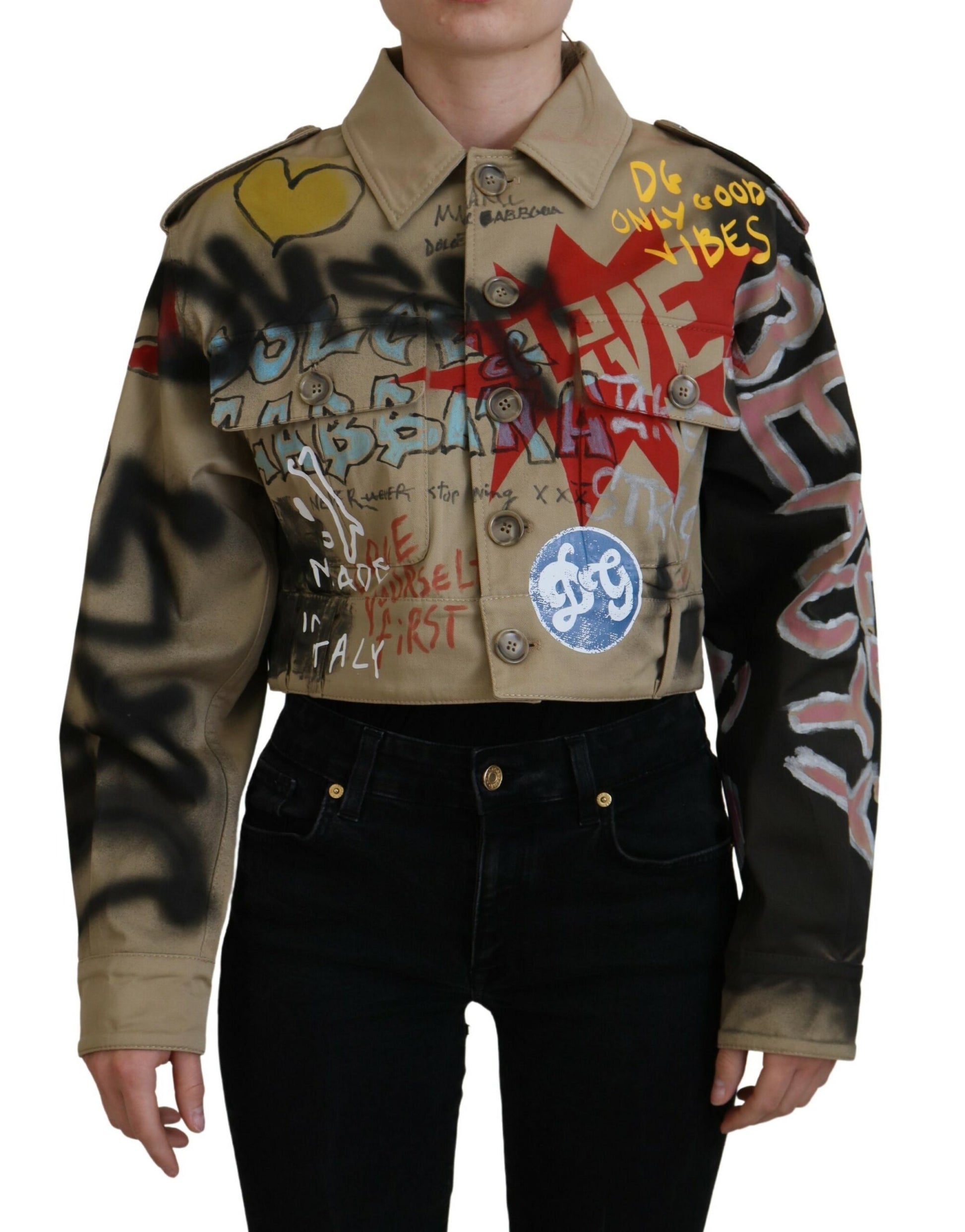 Indulge in the luxurious feel of Italian craftsmanship with this stunning long sleeves cropped jacket from Dolce & Gabbana. The piece radiates elegance and a bold fashion statement with its vibrant multicolor design. Tailored for a regular fit and adorned with the brand’s signature logo details, this piece isn’t just an item of clothing—it’s a work of art that encapsulates the brand’s dedication to high craftsmanship and style.
