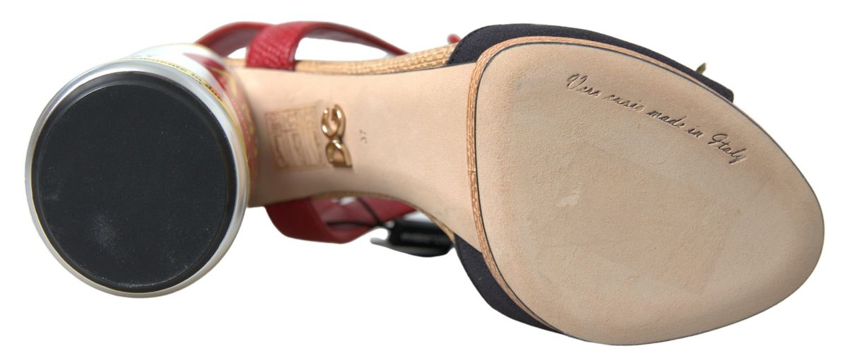 Indulge in the epitome of Italian luxury with these exquisite Dolce & Gabbana ankle strap sandals, expertly crafted for the fashion-forward woman. Boasting a vibrant ‘Amore’ print and adorned with champagne crystals, these heels are guaranteed to captivate and enchant at any soirée. The meticulously designed leather soles ensure comfort without compromising on style, allowing you to dazzle from dusk till dawn.