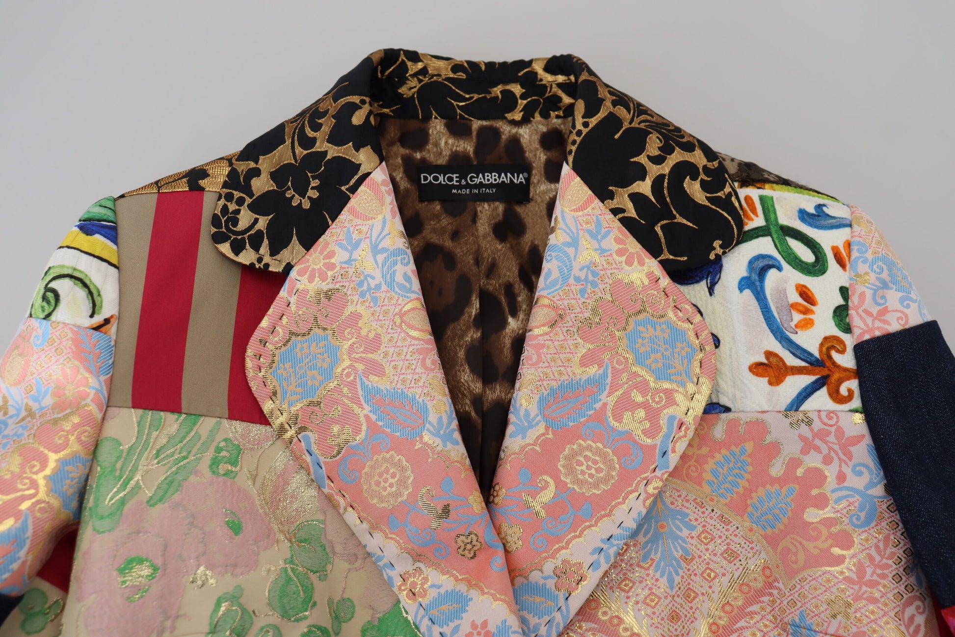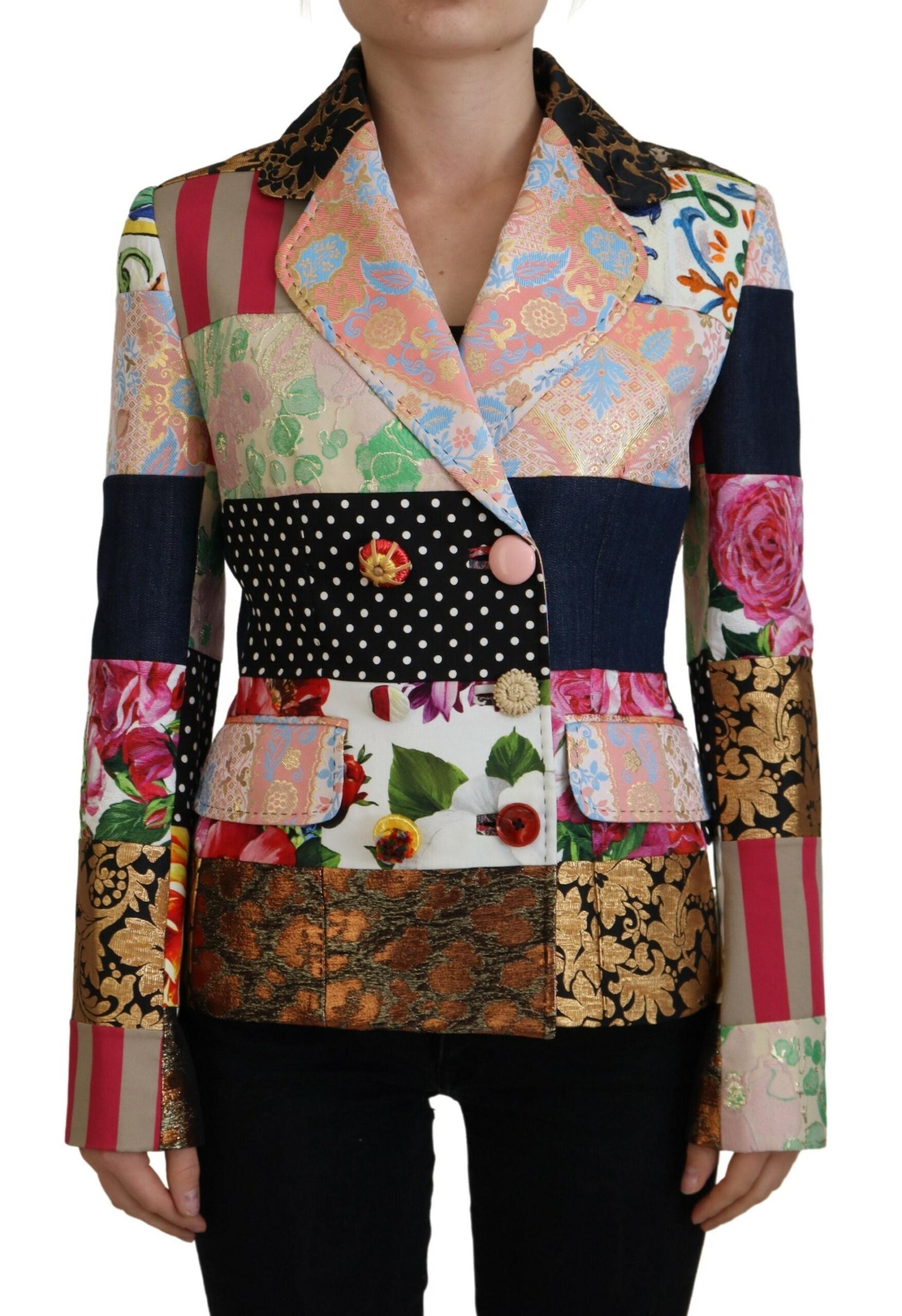 Step into a world of luxury and style with this stunning blazer from Dolce & Gabbana. Meticulously crafted in Italy, this double-breasted jacket is a true masterpiece featuring a unique multicolor patchwork design that exudes elegance and high fashion. The exquisite mix of materials and impeccable tailoring make it not just a statement piece, but a testament to exceptional craftsmanship. Perfect for adding a splash of color and sophistication to your wardrobe, this blazer is sure to turn heads at any event.