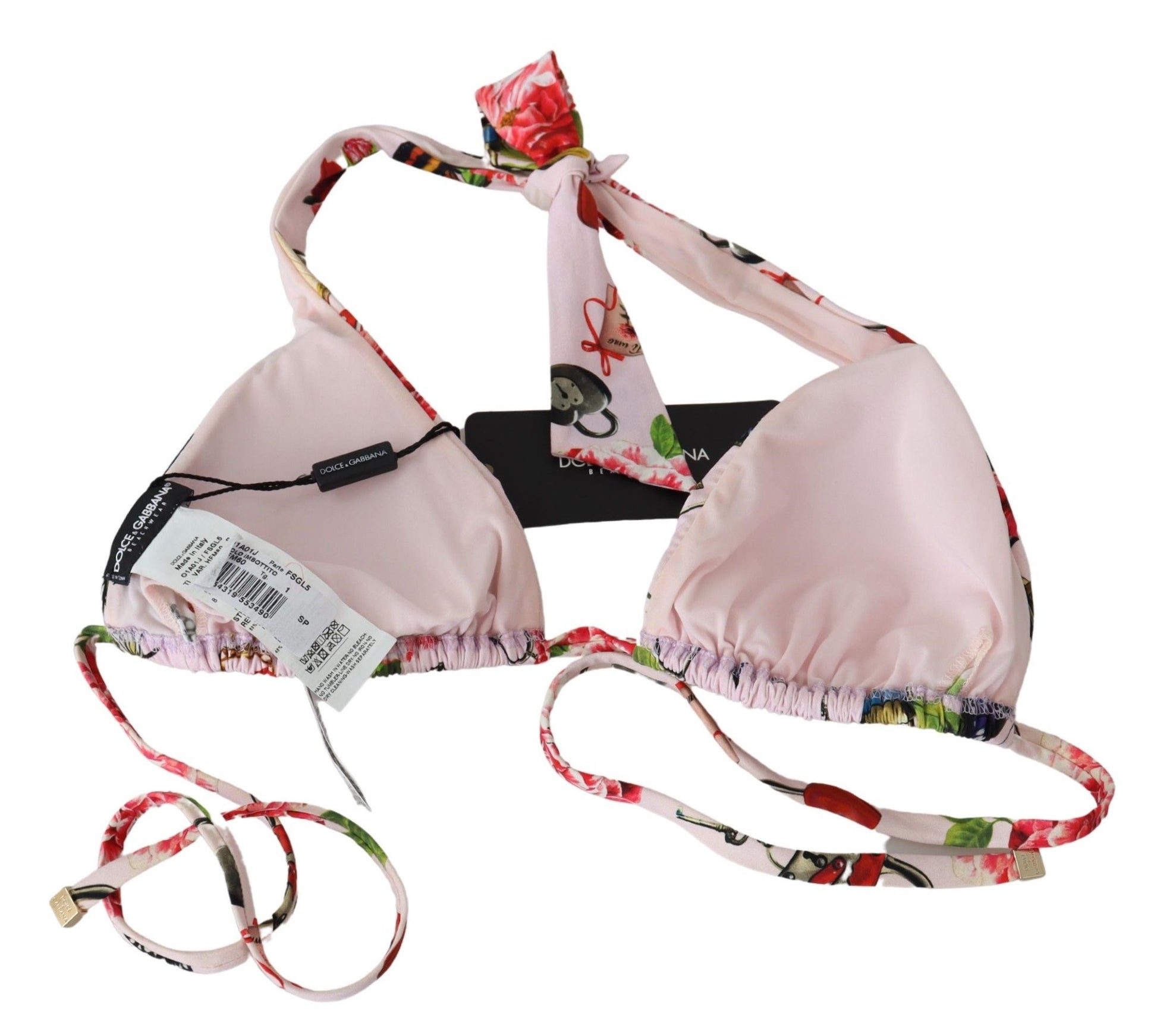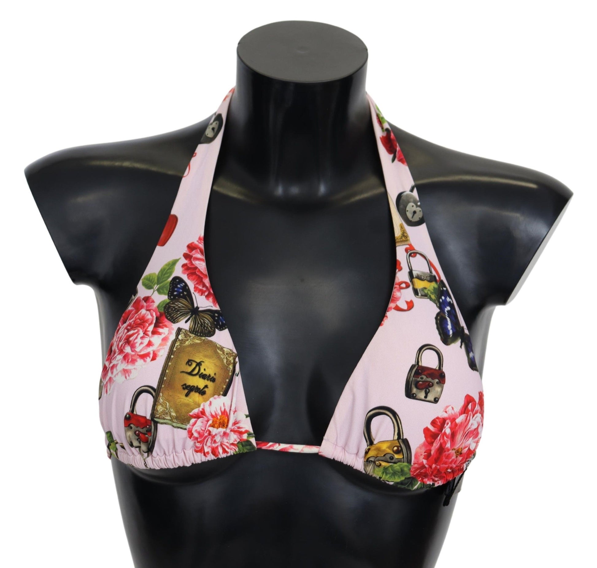 Indulge in the elegance of Dolce & Gabbana with this stunning bikini top, featuring a vibrant floral print for a splash of summer charm. Perfectly crafted with a blend of nylon and elastane, this top offers a comfortable stretch fit, with tie neck fastenings and a chic logo-embossed back closure for that added touch of luxury. Embrace your poolside glamour with this Italian-made piece that promises to turn heads.