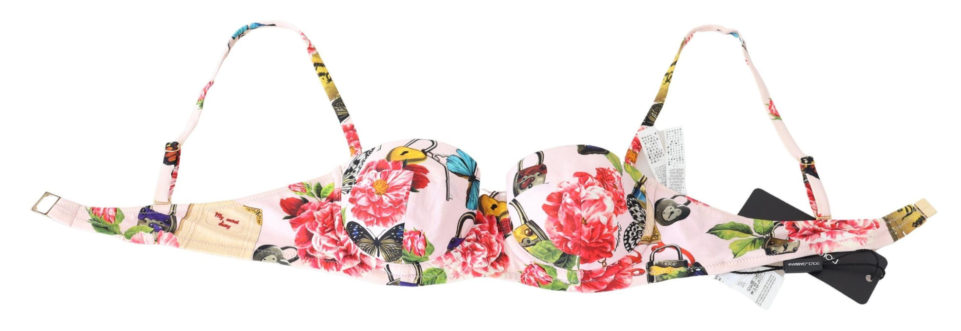 Indulge in the epitome of summer elegance with this gorgeous, brand new bikini top from Dolce & Gabbana adorned with a vivacious floral print. Perfect for sun-soaked days, this top is crafted from a blend of nylon and elastane, offering both comfort and a flattering fit. Embrace luxury with the delicate logo detailing and experience the quality of Italian craftsmanship with every wear.