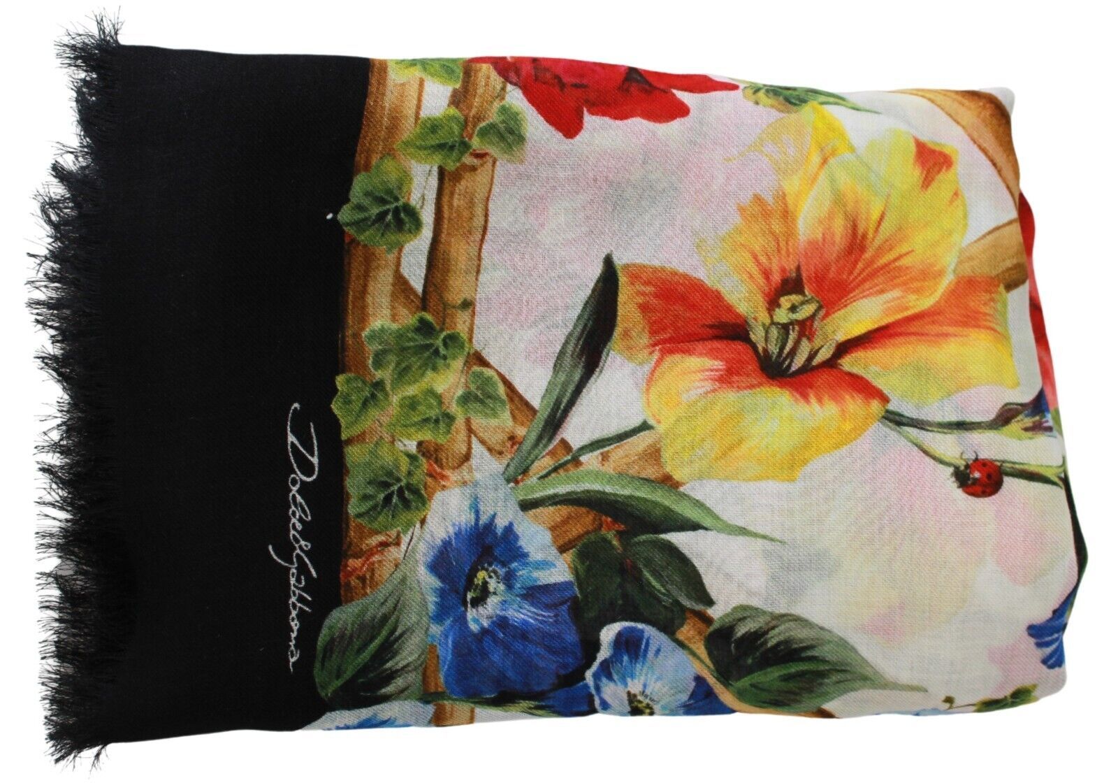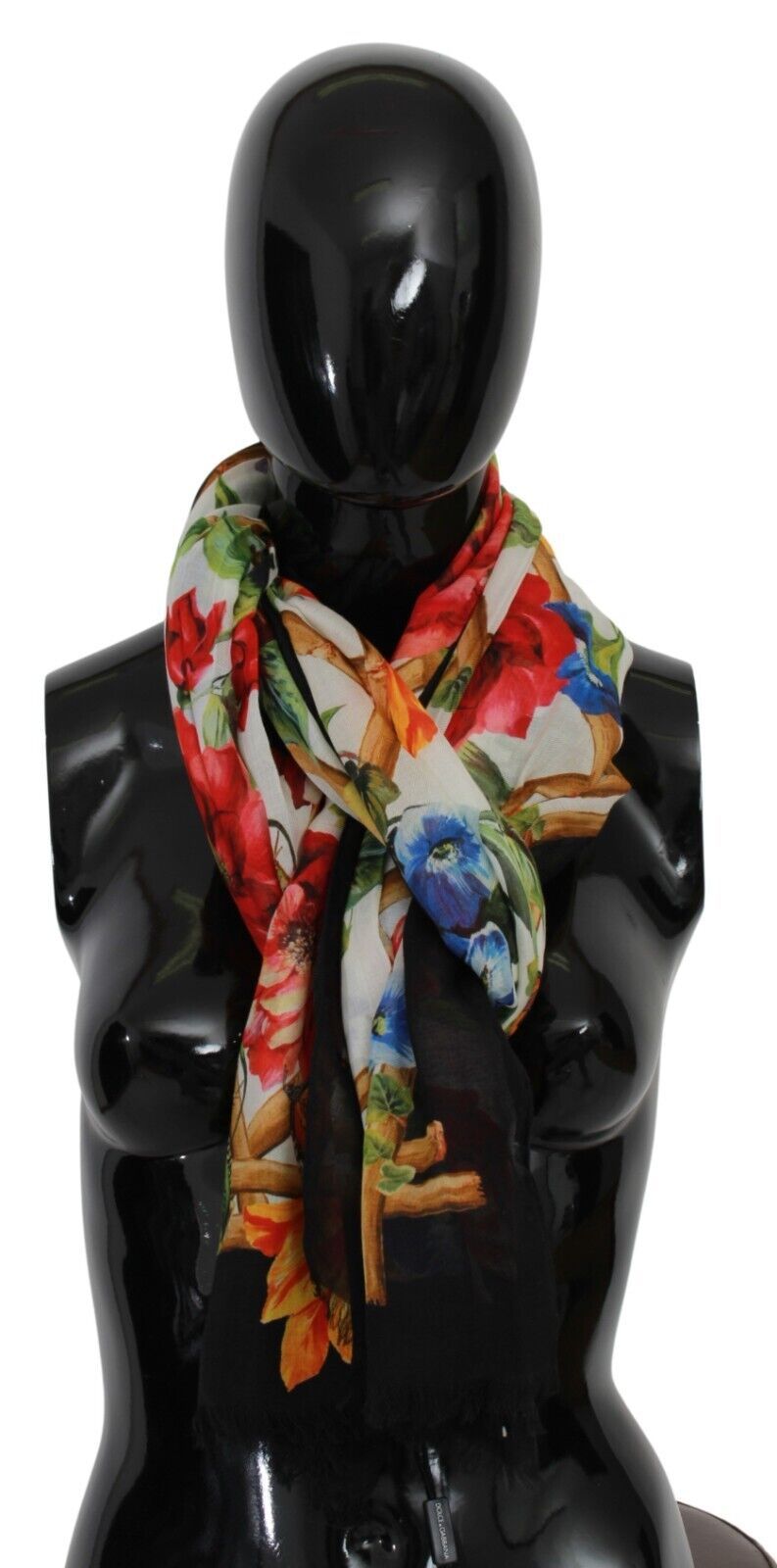 Exude sophistication with this stunning scarf from Dolce & Gabbana. Featuring a vibrant multicolor floral print, it’s the perfect accessory to elevate any ensemble. Crafted in Italy, this scarf blends luxurious modal with sumptuous cashmere for an exquisite feel.