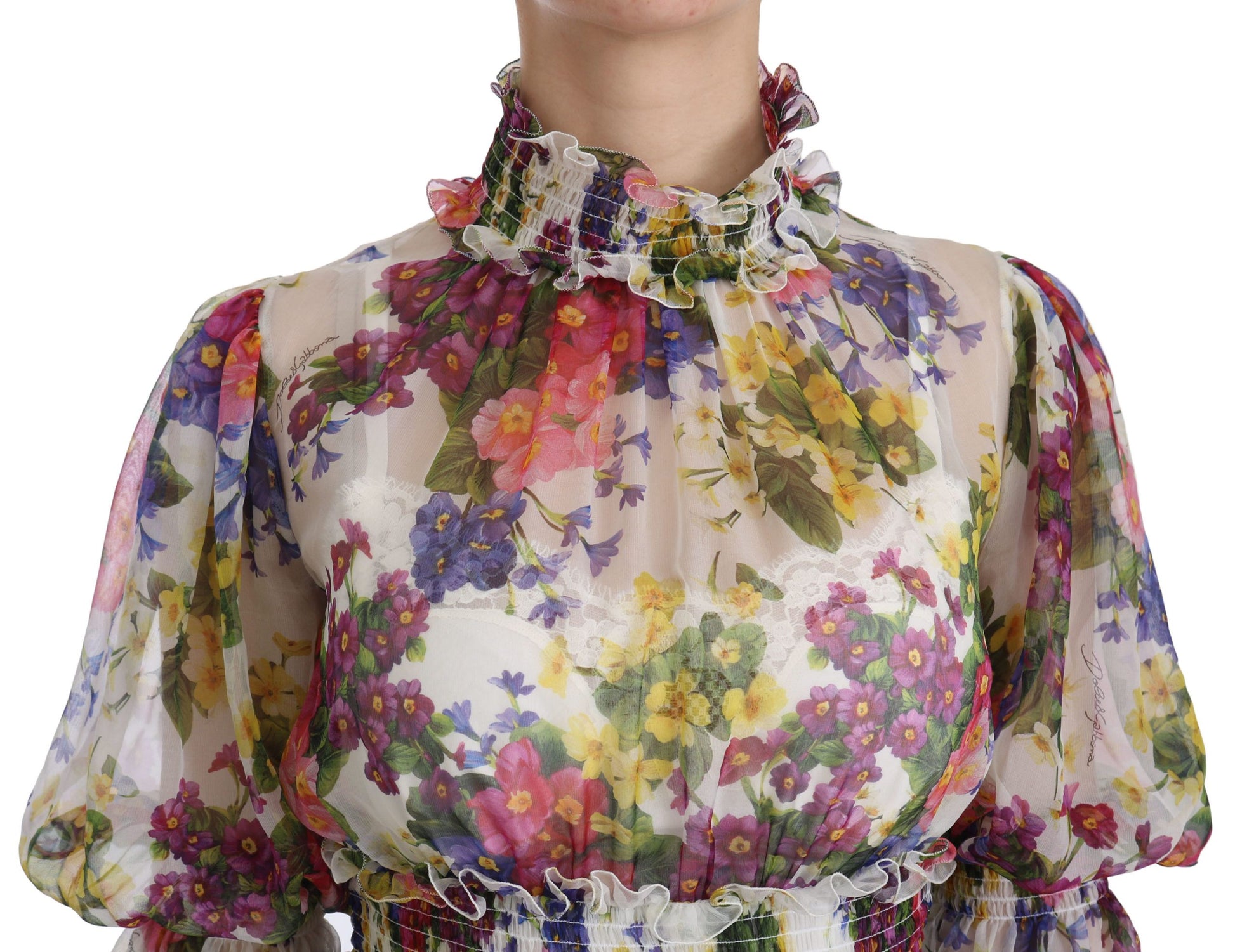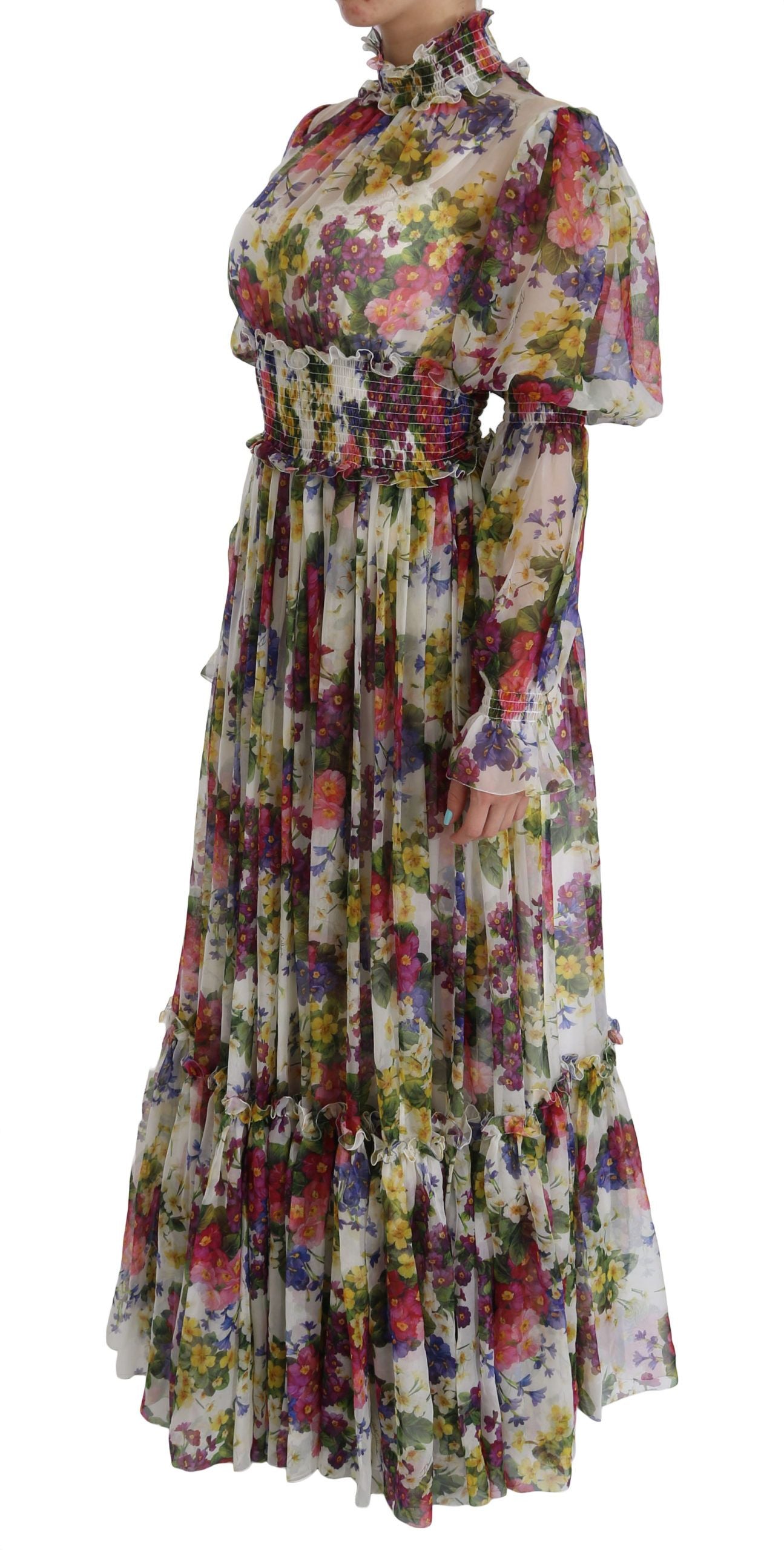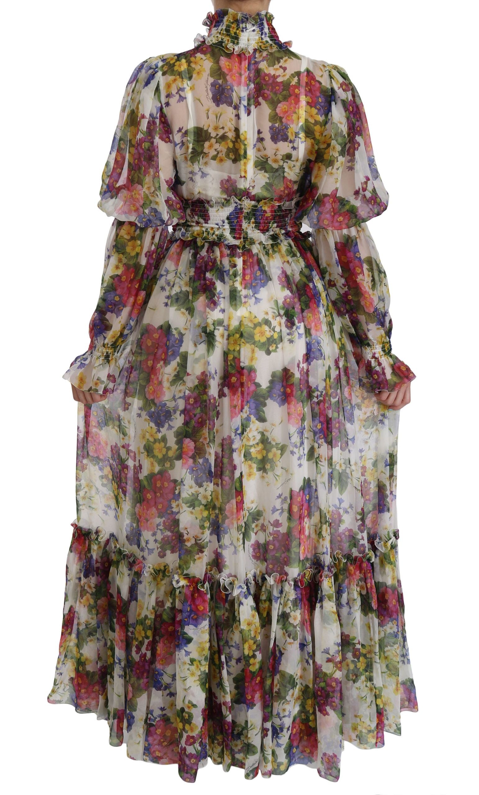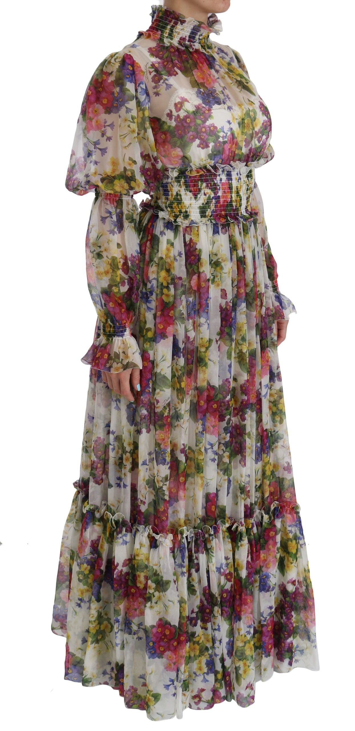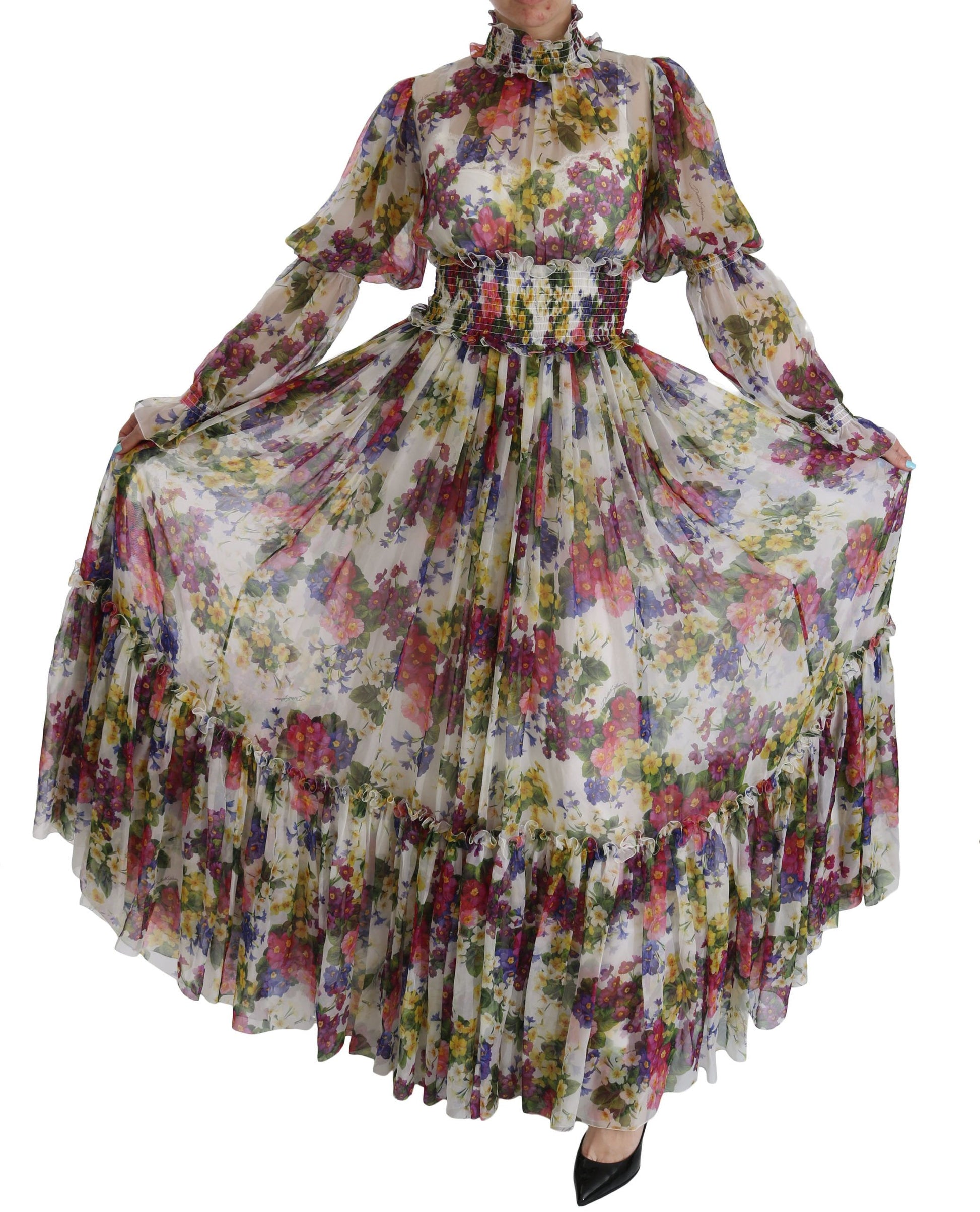 Experience elegance and sophisticated craftsmanship with this stunning Dolce & Gabbana A-Line Pleated Long Dress, perfect for making a statement at any upscale event. Adorned with a vibrant multicolor floral pattern, this 100% silk dress exudes luxury and style. It is brand new with tags, ensuring you the finest quality and an exclusive wardrobe addition. Enjoy the comfort and delicate support of the luxurious inner lining as you grace any room with your presence.