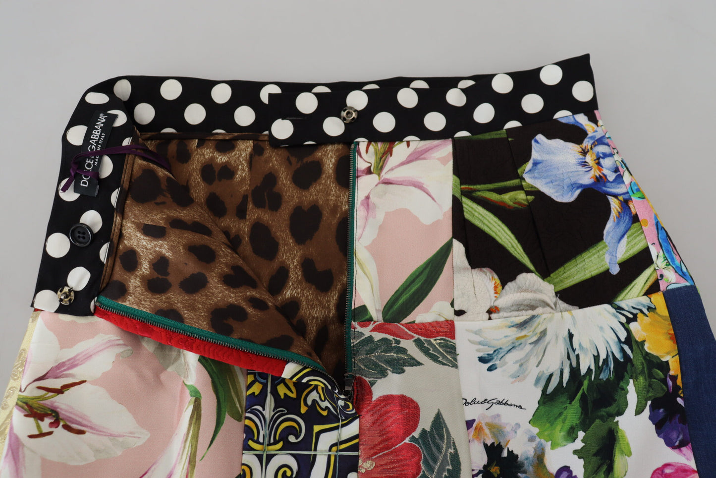 Indulge in the artistry of a high-waisted, multicolored Dolce & Gabbana mini skirt, designed to turn heads with its captivating majolica patchwork. This eye-catching skirt is not only a testament to impeccable Italian craftsmanship but also an exemplar of luxurious style. With a secure zipper, you can step out in this piece with both confidence and elegance, adding a touch of the extraordinary to your wardrobe.