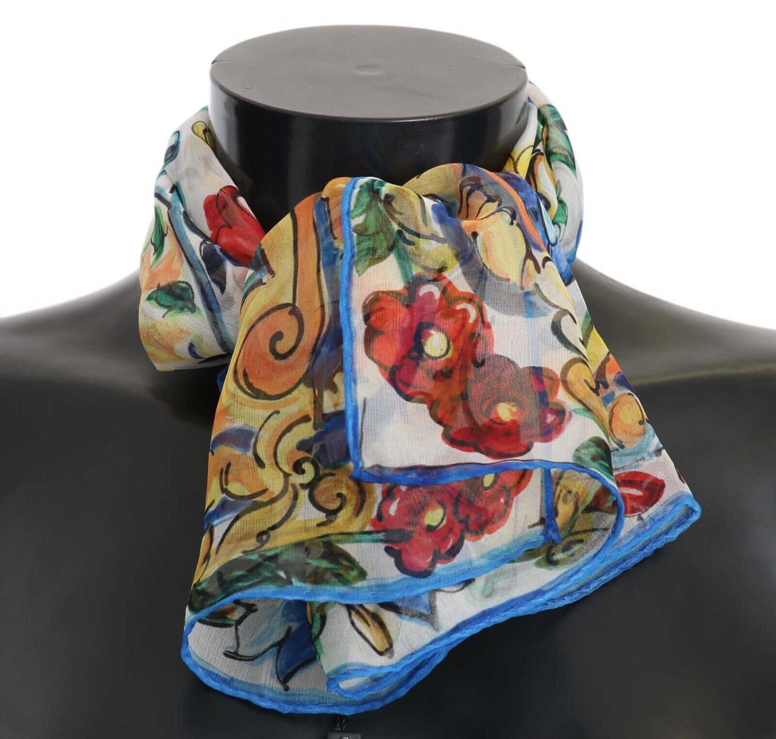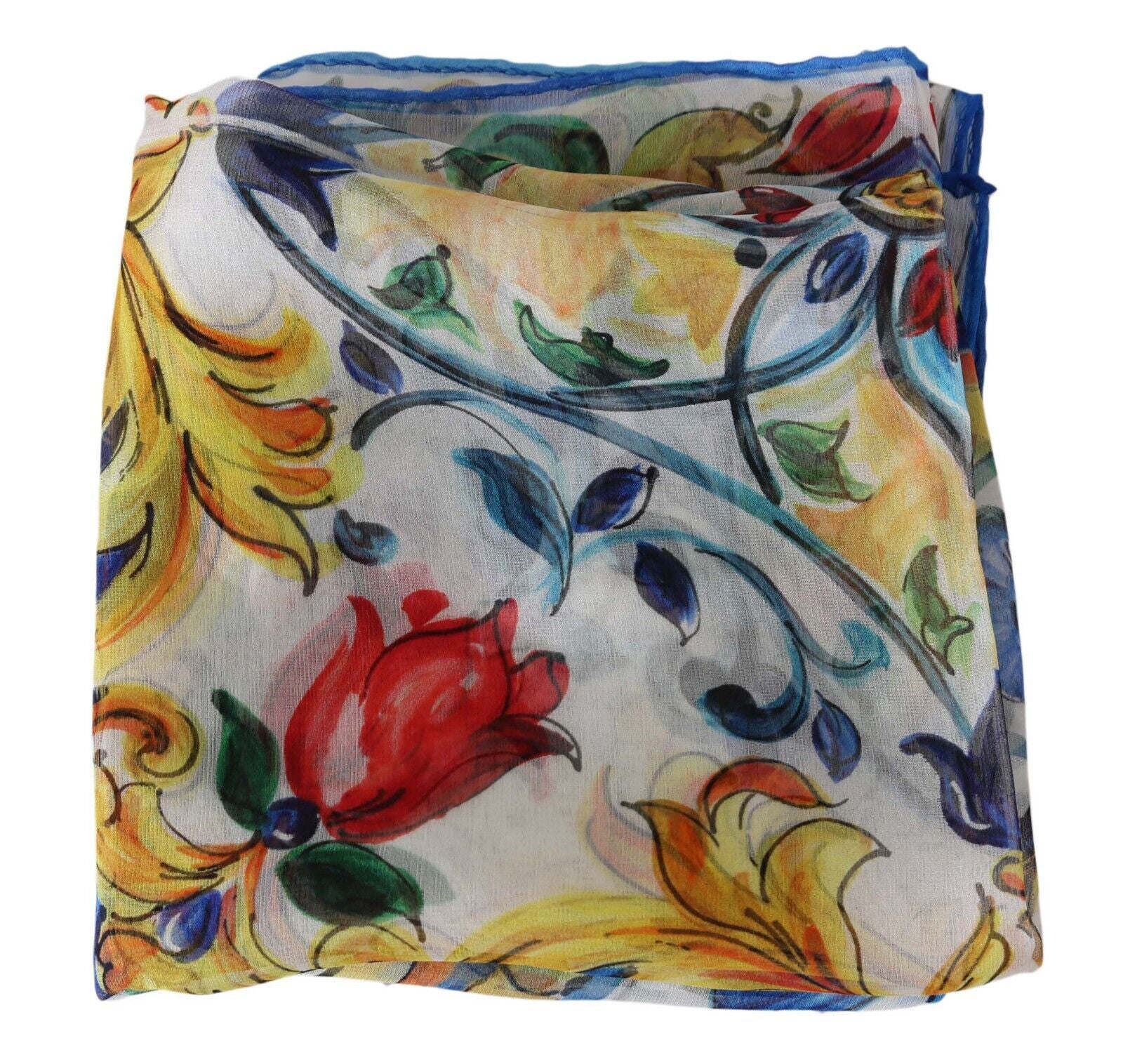 Accessorize in luxury with this exquisite Dolce & Gabbana scarf, featuring a vibrant multicolor majolica print. Crafted in Italy from a sumptuous silk blend, this scarf is an emblem of sophistication and timeless style. Perfect for enhancing any outfit with a touch of elegance. Logo details affirm the bespoke quality of this piece.
