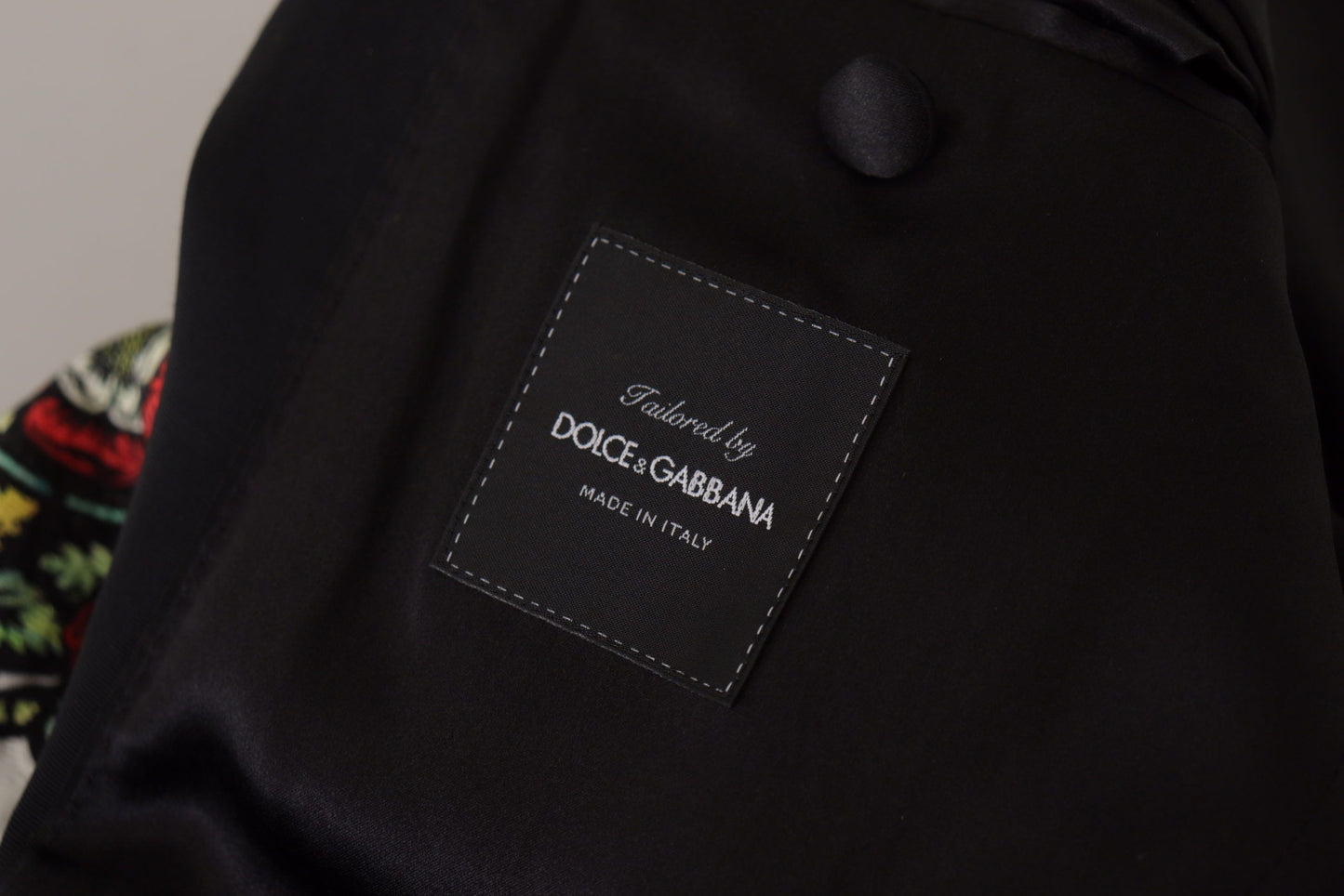 Make an impeccable fashion statement with this stunning, 100% Authentic Dolce & Gabbana single-breasted jacket, embellished with a unique multicolor Napoleon print. Tailored to perfection, this premium piece with a peak style lapel symbolizes luxury and style. This blazer is perfect for those seeking to elevate their wardrobe with a touch of Italian craftsmanship.