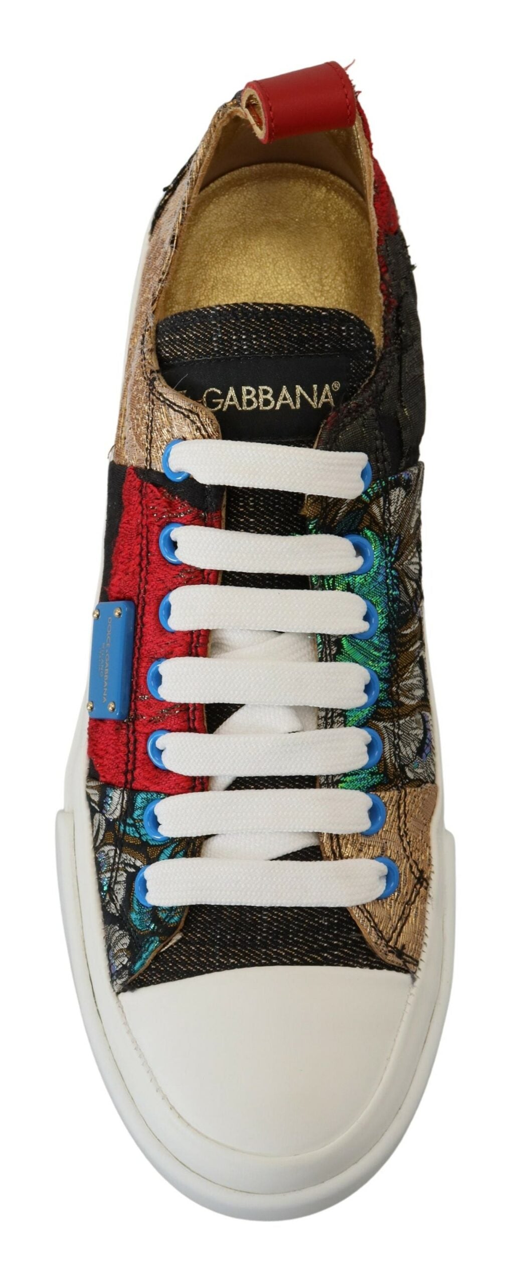 Step into vibrant style with these stunning lace-up sneakers from the fashion powerhouse, Dolce & Gabbana. These brand new, authentically tagged shoes are the perfect blend of luxury and sporty chic. Crafted from multi-fabric materials, they feature a bold multicolor patchwork design that is sure to turn heads. With a durable rubber sole and the iconic logo detailing, they’re made in Italy and ready to elevate your casual ensemble.