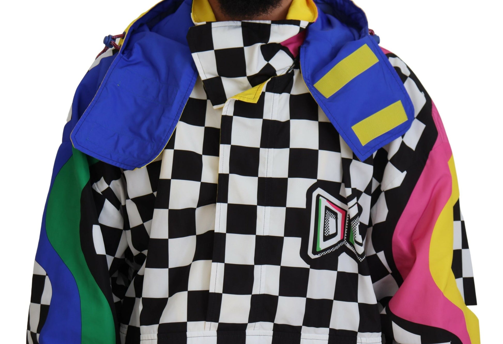 Step out in standout style with this absolutely stunning and vibrant hooded jacket from the illustrious Dolce & Gabbana. Expertly crafted in Italy, this piece is not only a testament to impeccable style but also promises durability with its 100% polyester composition. The eye-catching multicolor palette ensures you’ll be the centerpiece of any room, while the practical Velcro closure adds a touch of modernity and ease. With two convenient outside pockets, you can keep your essentials close at hand without sacrificing style. Perfect for those looking to add a designer touch to their wardrobe, this Dolce & Gabbana jacket is a must-have to keep you ahead in the fashion game.