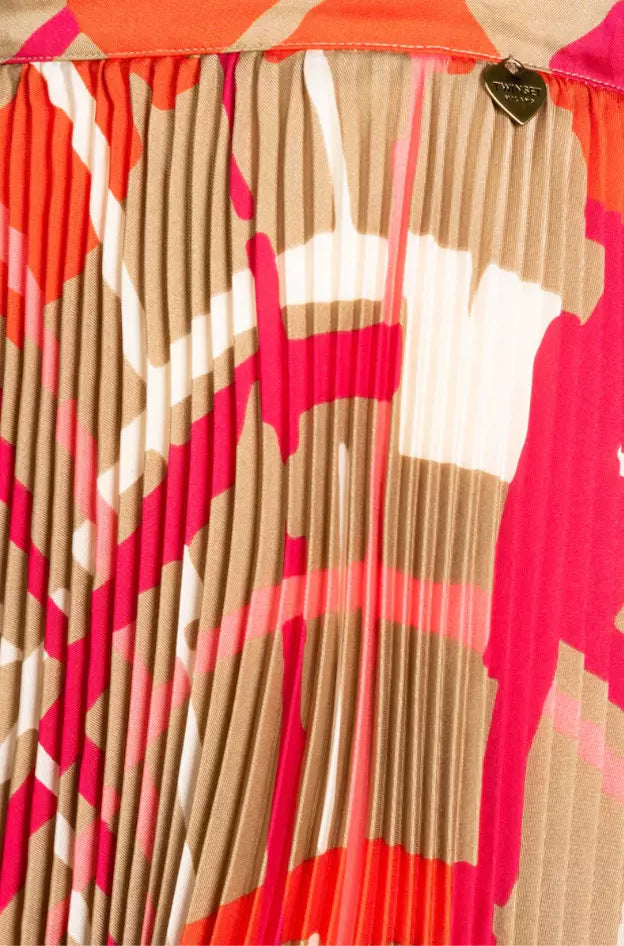 Step into a world of color and sophistication with this stunning long pleated skirt, featuring a captivating abstract design. Its meticulous pleats and flowing silhouette offer both comfort and style, making it perfect for a range of occasions. Expertly crafted in Italy, this skirt exemplifies fine tailoring and sartorial finesse.