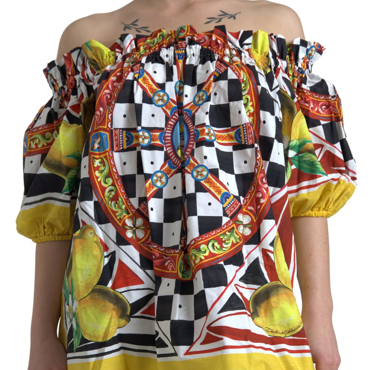 Step out in style with this gorgeous off-shoulder printed top crafted from 100% pure cotton for a comfortable and breathable feel. Embodying the luxury and craftsmanship synonymous with Dolce & Gabbana, this multicolored blouse is the perfect blend of elegance and trendsetting style. Accentuated with the label’s signature logo details, this piece is proudly made in Italy and guarantees to elevate your fashion statement.
