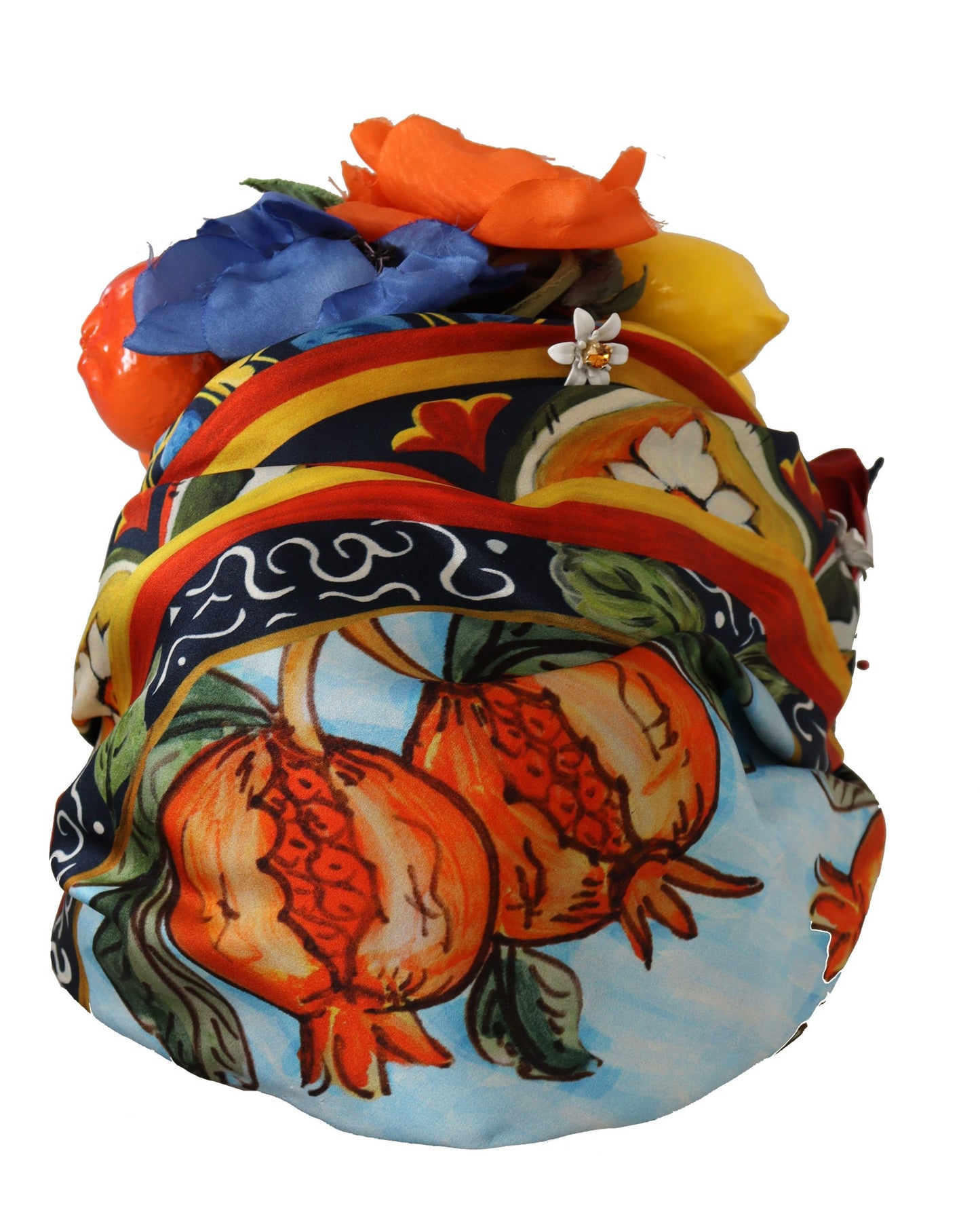 Indulge in the luxury of Dolce & Gabbana with this stunning silk head wrap, adorned with vibrant fruits and floral appliqués. Direct from the exclusive MainLine Collection, this multicolor piece is a brand-new addition to your fashion repertoire, complete with iconic logo details and Italian craftsmanship.