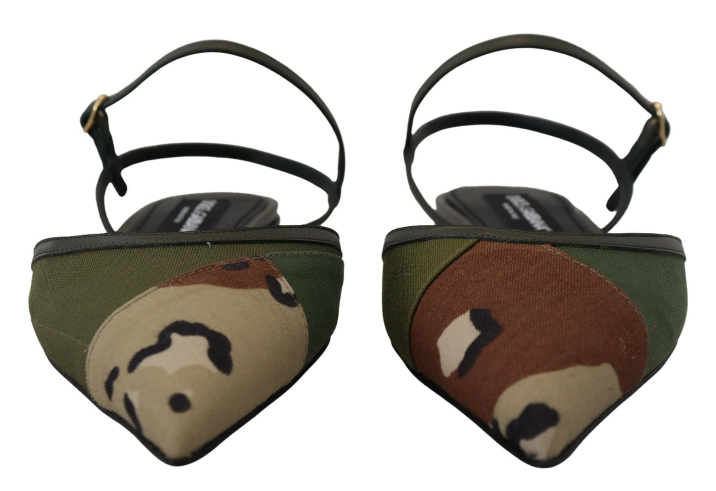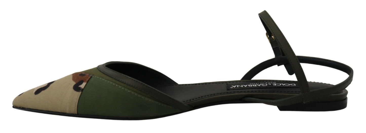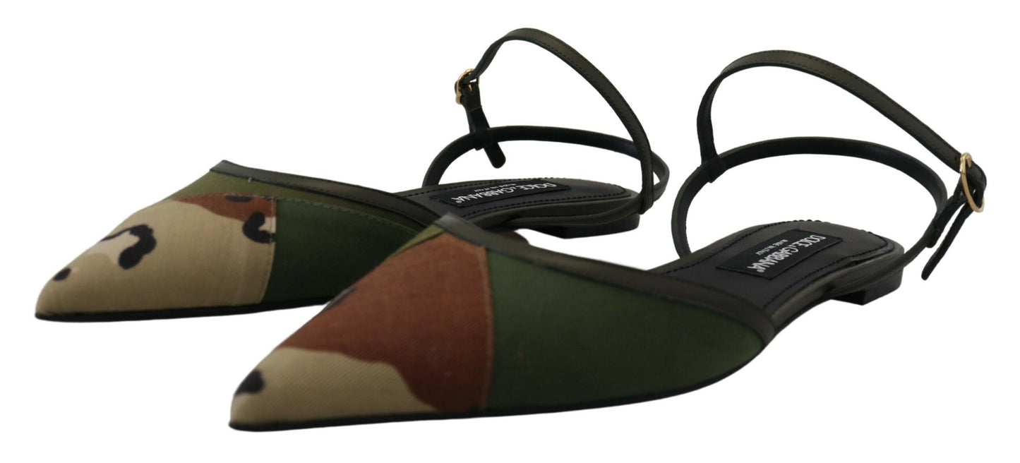 Step into style and comfort with these stunning flats, a testament to Italian craftsmanship. Designed for the modern woman, these shoes boast a playful yet sophisticated multicolored camouflage pattern, artfully complemented by sleek black accents. With their elegant silhouette and comfortable fit, these slingback flats are perfect for any occasion that calls for a touch of glamour without compromising on comfort. From Dolce & Gabbana, a brand synonymous with luxury and attention to detail, these shoes will elevate your wardrobe effortlessly.