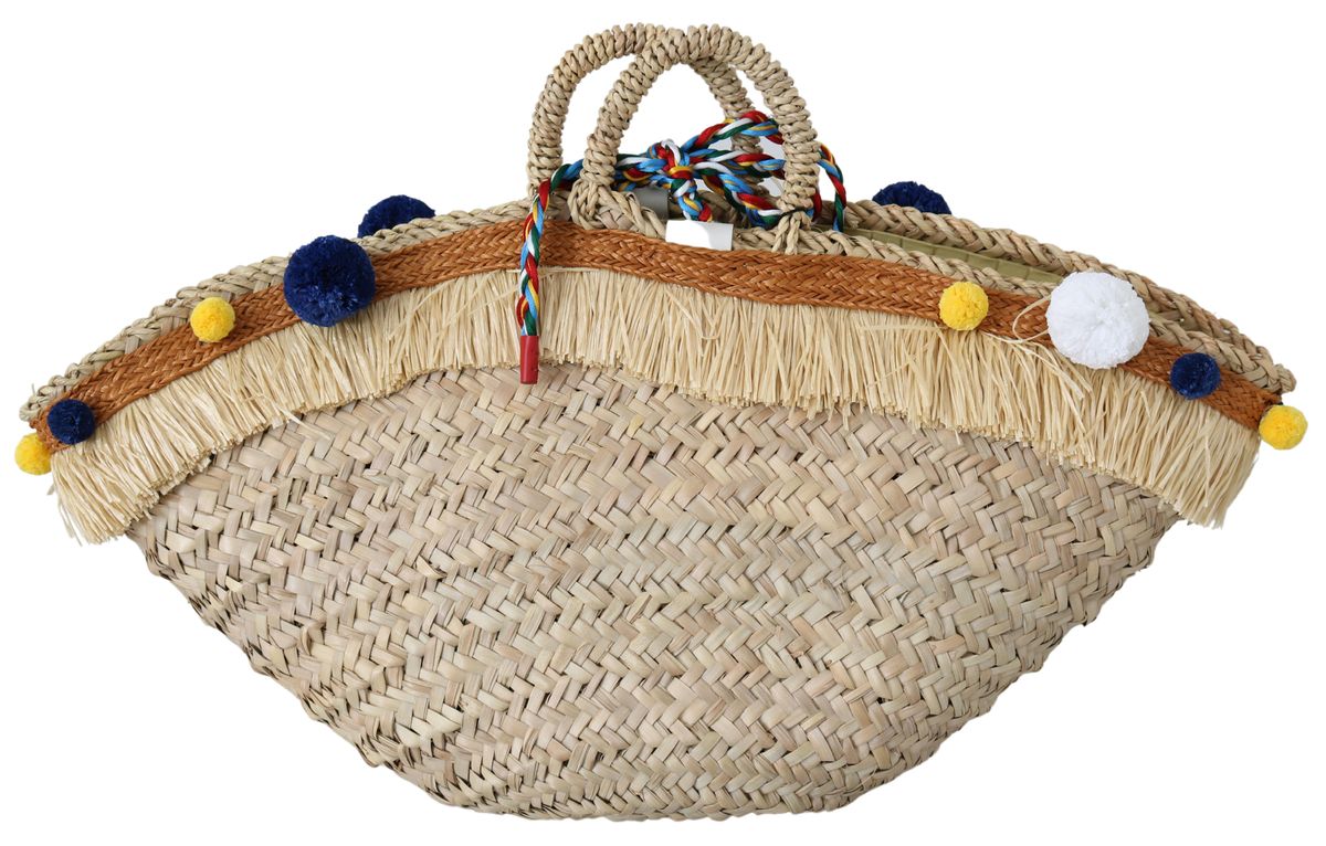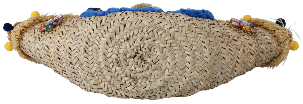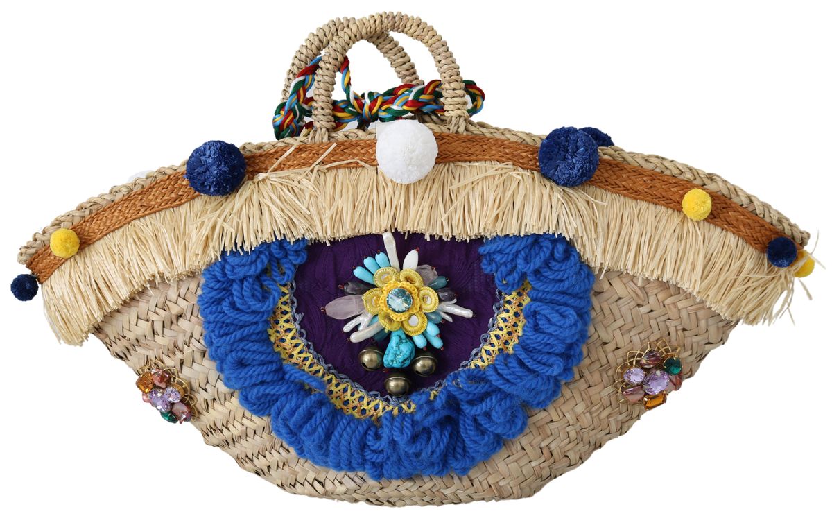 Indulge in the epitome of Italian luxury with this exquisite Dolce & Gabbana hand tote. Crafted with a unique blend of natural straw and supple leather, this tote features vibrant multicolor fur balls adorned with sparkling crystals, creating an accessory that will turn heads and elevate any ensemble. The beige silk interior lining is a statement of elegance, and the inside pocket with zipper brings functionality to its opulent design. Each bag is a testament to high Italian craftsmanship, proudly made in Italy and showcasing the unmistakable Dolce & Gabbana logo details.