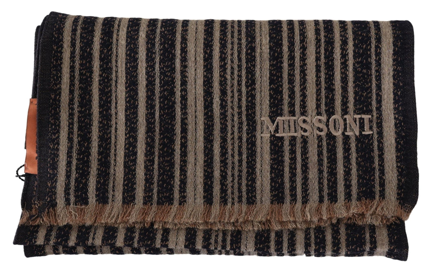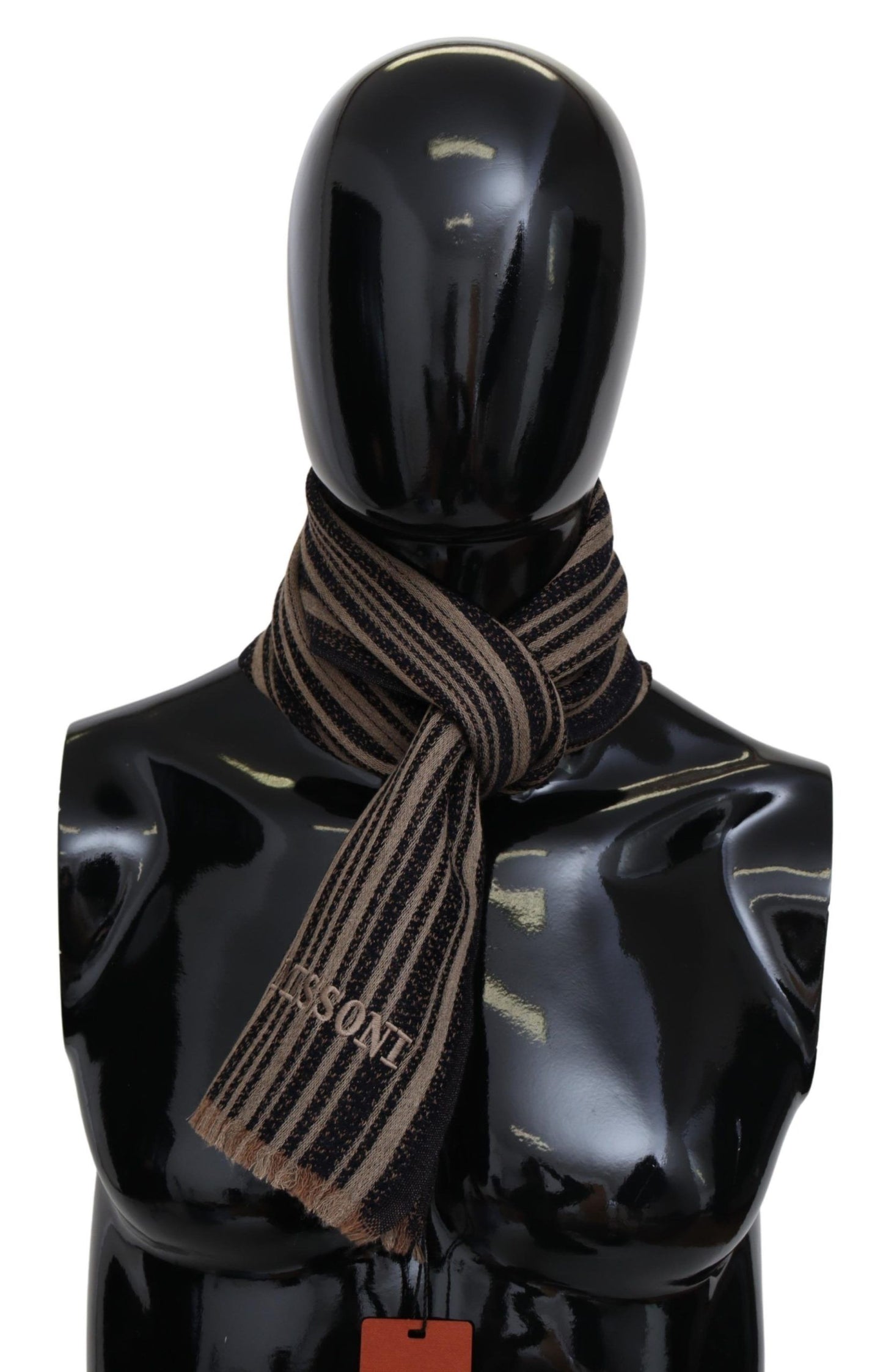 Wrap yourself in luxury with this stunning new-with-tags Missoni wool scarf. Flaunting an eye-catching stripes pattern and the iconic brand logo embroidery, this scarf is a testament to timeless style and quality craftsmanship. Its sumptuous 100% wool composition guarantees warmth and comfort, perfect for adding a sophisticated touch to any outfit. An investment in fashion that transcends seasons, crafted with pride in Italy.