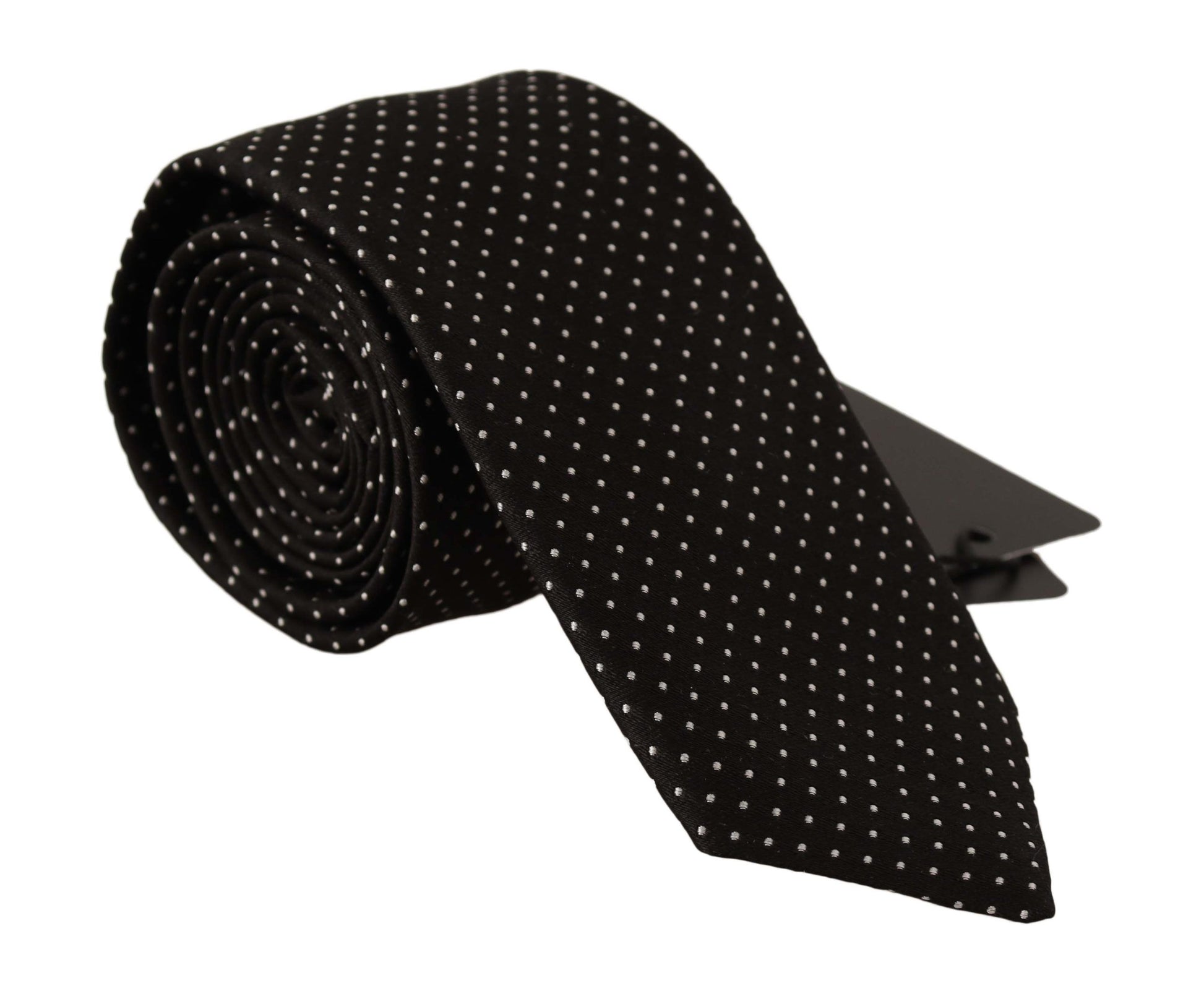 Accentuate your suave sophistication with this luxurious 100% silk tie. A statement piece from the exclusive MainLine collection by Dolce & Gabbana, this black tie with white polka dots exudes timeless elegance. Crafted with precision in Italy, it’s the perfect addition to distinguish your ensemble.