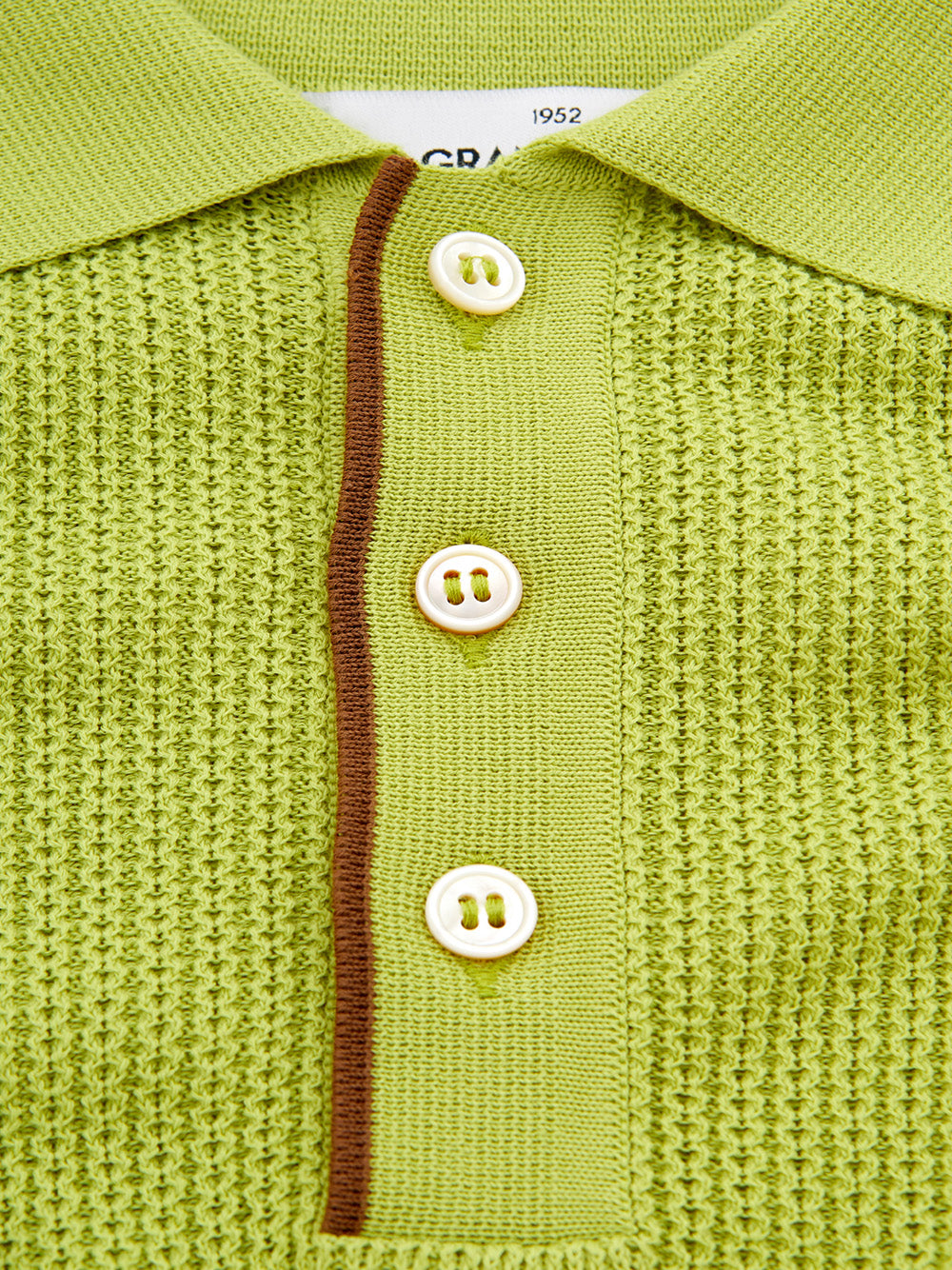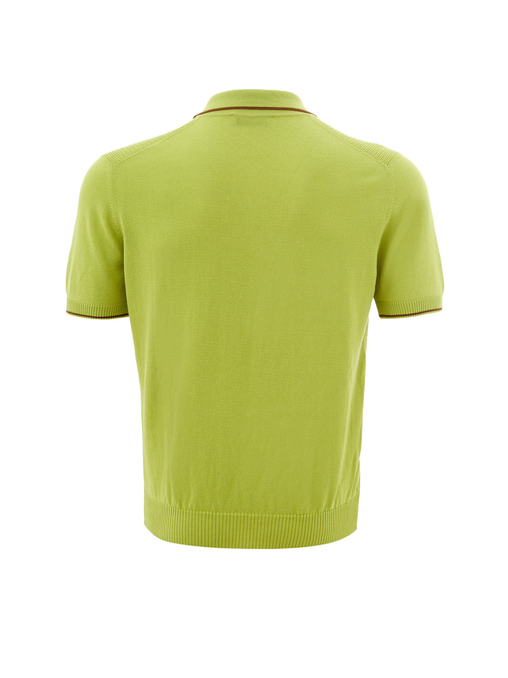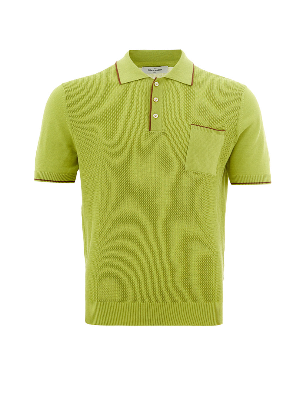 Discover the epitome of Italian craftsmanship with this stunning neon green cotton polo shirt from Gran Sasso. With a unique knitwear effect and a smart French collar, this polo embodies casual luxury. The front button closure and a sleek pocket add functional detail, ensuring a blend of comfort and style. Perfectly tailored for a regular fit, it will elevate your everyday ensemble.