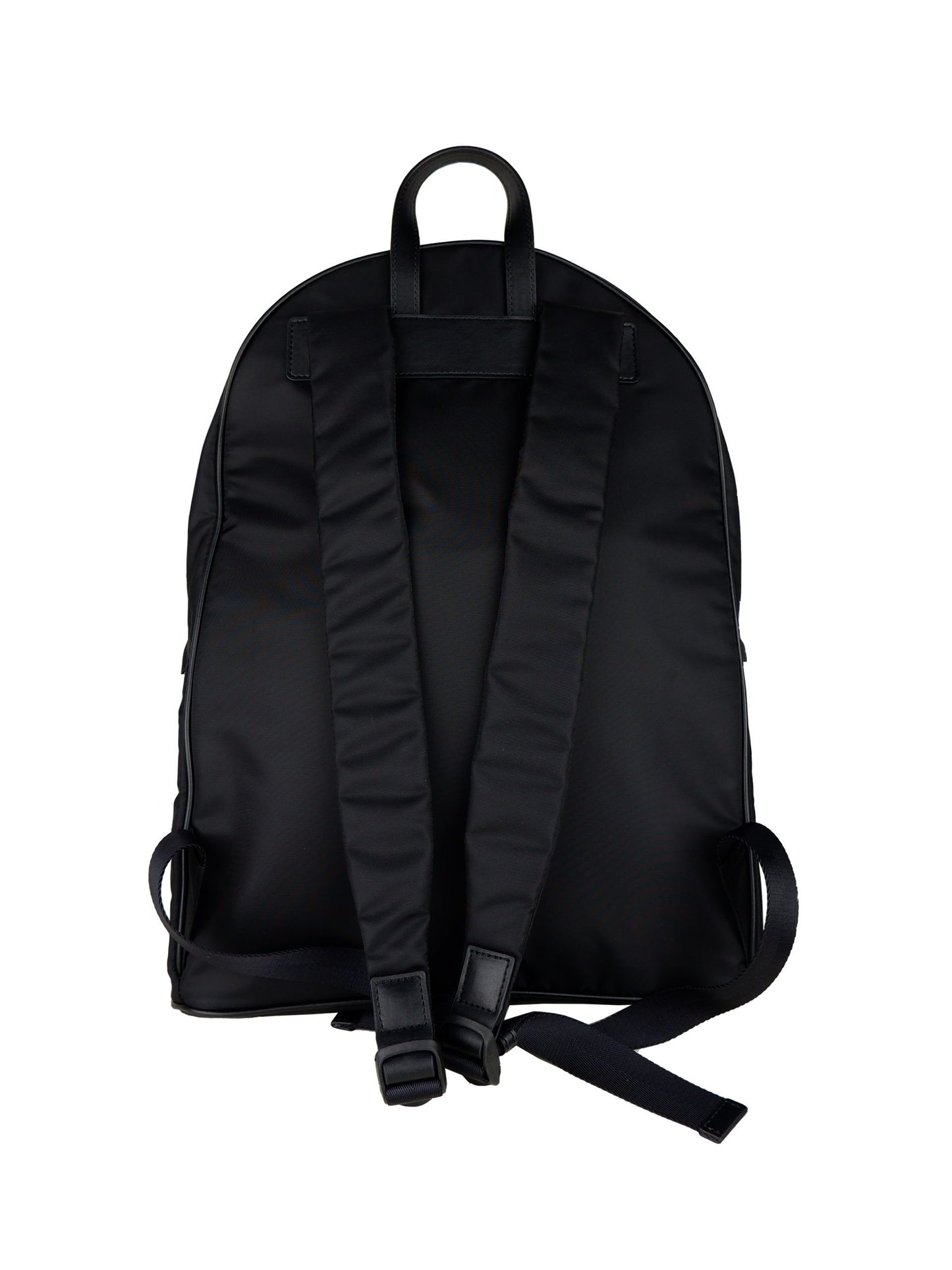 Upgrade your accessory game with this sleek black backpack, featuring a prominent brand logo for a touch of distinctive style. Crafted from durable nylon, this backpack is designed to withstand the hustle and bustle of everyday life while keeping you looking sharp.