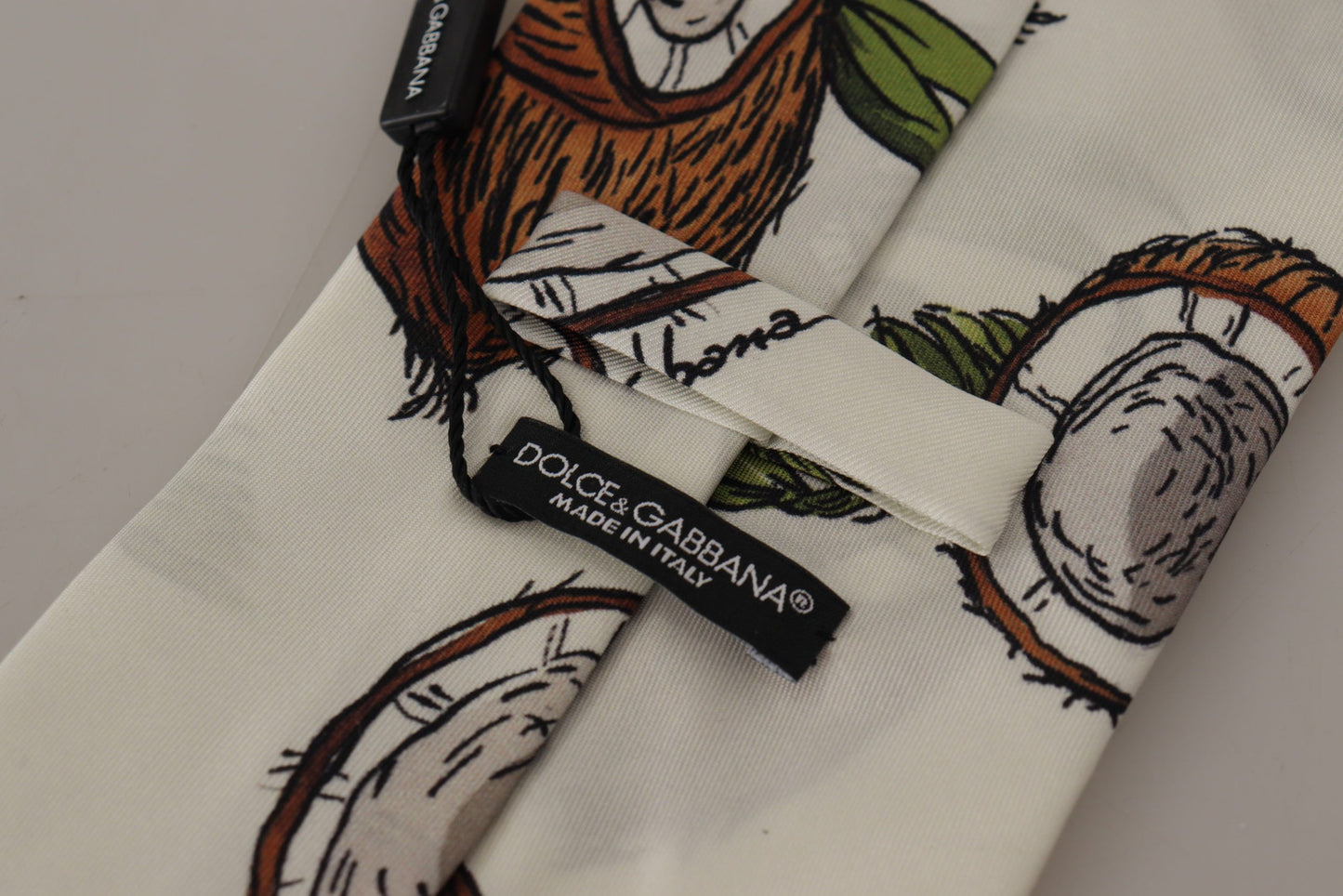 Indulge in the luxury of an authentic, brand new Dolce & Gabbana tie. This stunning, 100% silk tie adds a touch of sophistication to any gentleman’s wardrobe with its sublime off-white shade. Expertly crafted in Italy, it embodies elegance and high fashion.