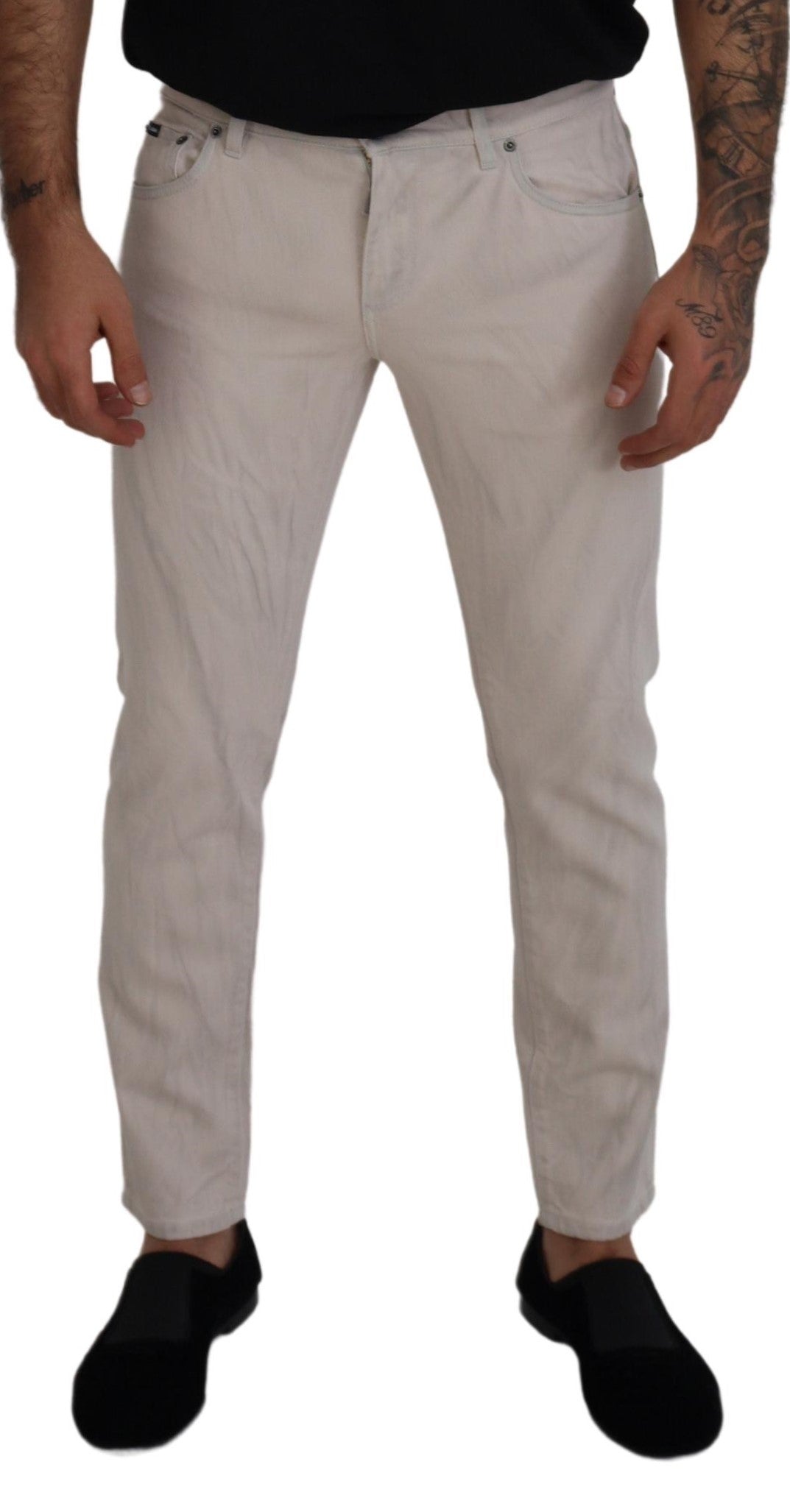 Off White Cotton Skinny Men Denim Jeans