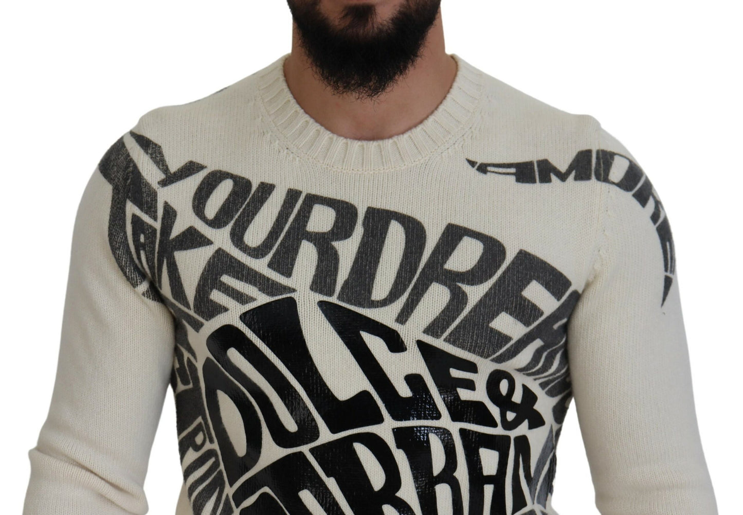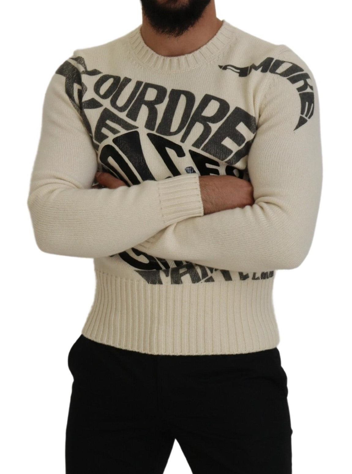 Indulge in the epitome of Italian craftsmanship with this luxurious Dolce & Gabbana pullover sweater. Exuding elegance in an off white hue, it’s a perfect blend of comfort and high-end style, ideal for those who appreciate refined fashion. Crafted from the finest 100% virgin wool, this sweater is not just a garment but a statement of sophistication, ready to elevate your wardrobe.