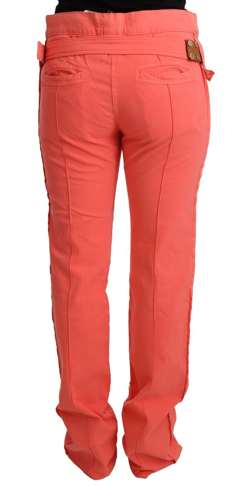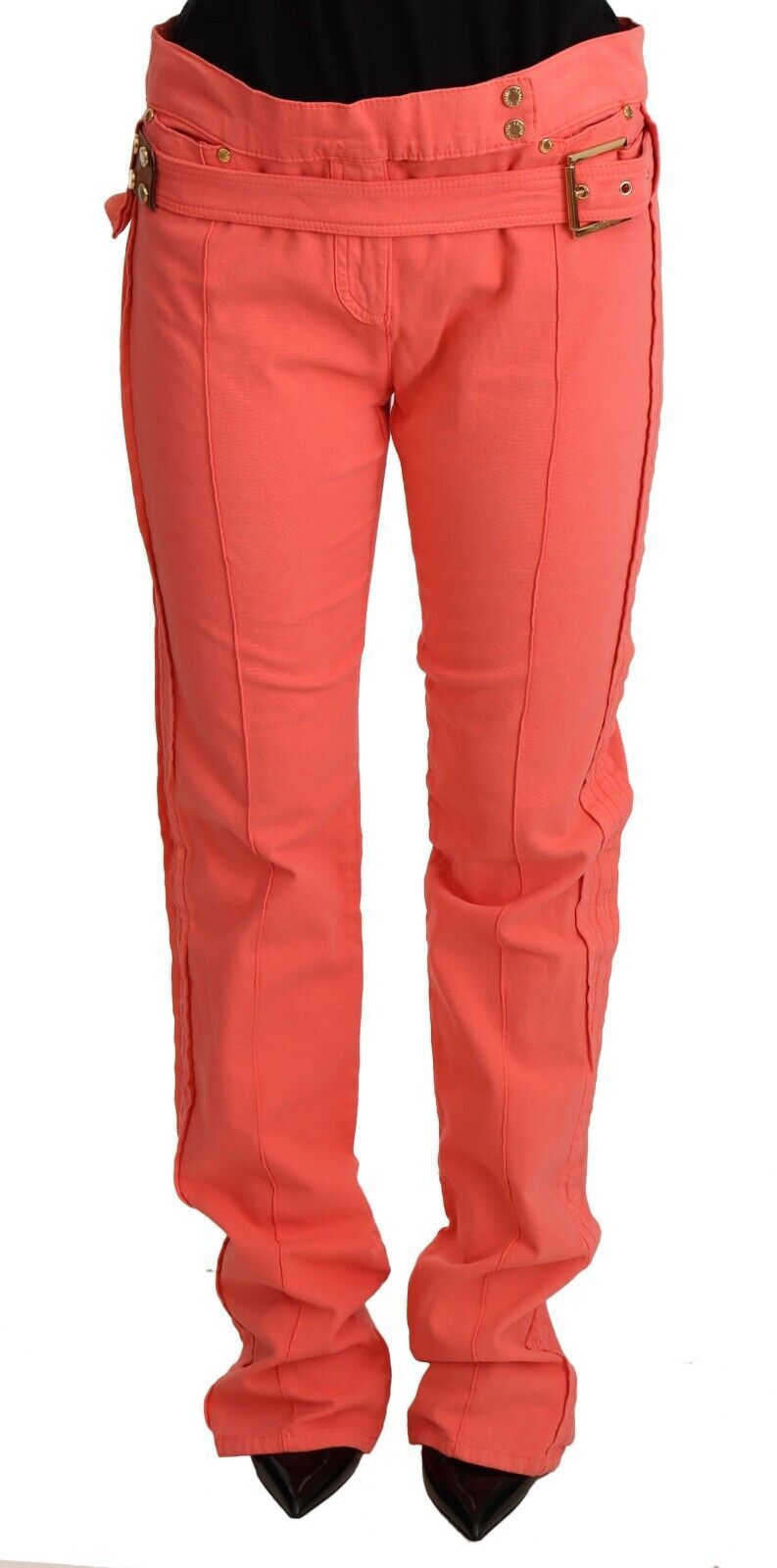 Step into style with these stunning Roberto Cavalli skinny jeans that combine comfort and sophistication. Boasting a vibrant orange hue, these mid waist pants are perfect for creating eye-catching outfits. Designed with a snug fit and crafted from high-quality cotton, they feature a secure zipper closure and are adorned with the brand’s signature logo details, making them a must-have for any fashion-forward wardrobe.