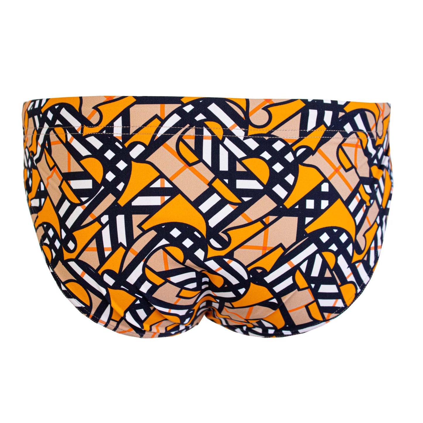 Immerse yourself in luxury and style with these stunning, brand new swim briefs, proudly brought to you by Burberry. A delightful orange print exudes vibrancy and sophistication, ensuring you stand out with elegance in any waterside setting. Perfect for those who appreciate a normal fit and the premier quality of a celebrated fashion house.