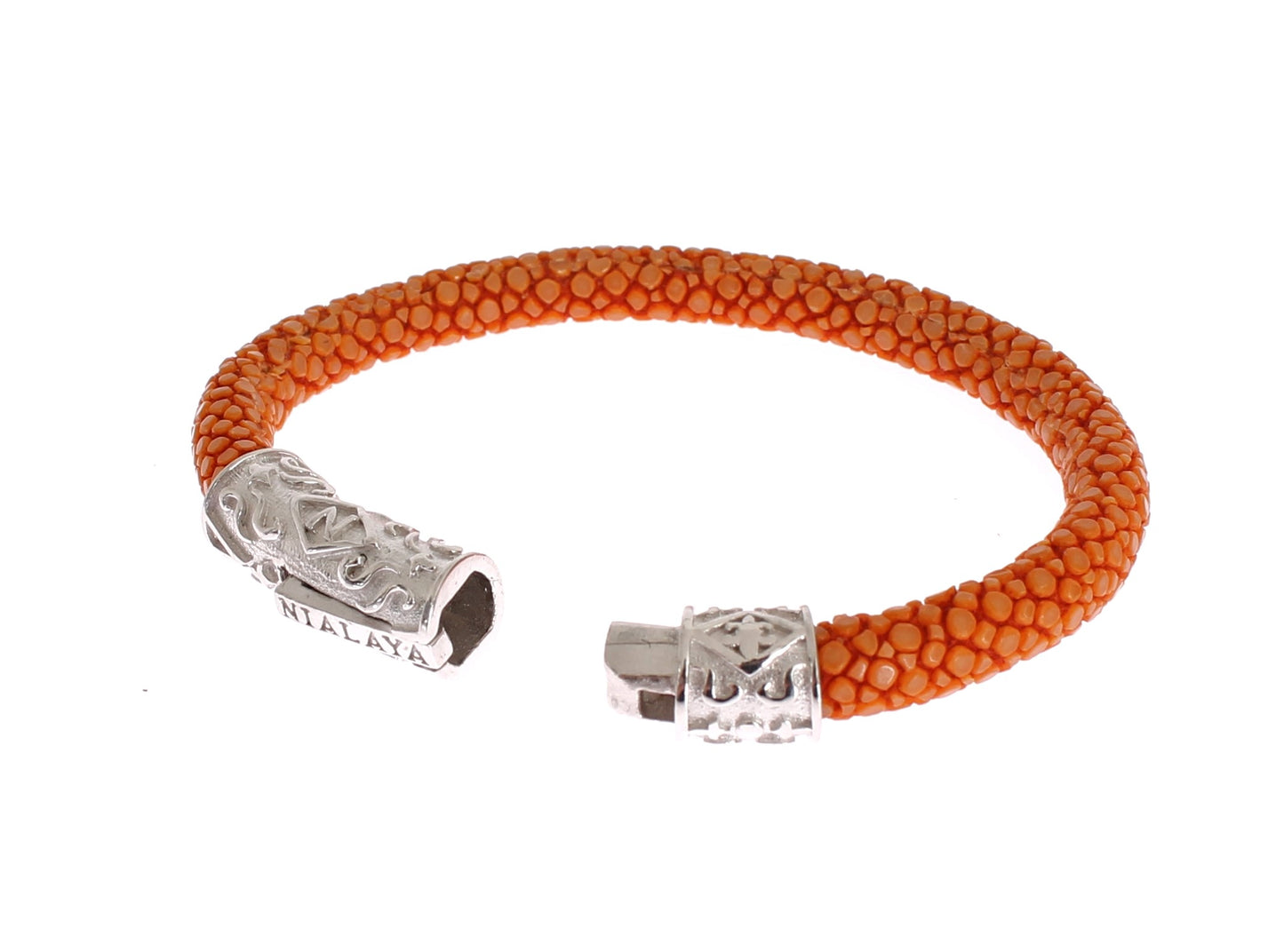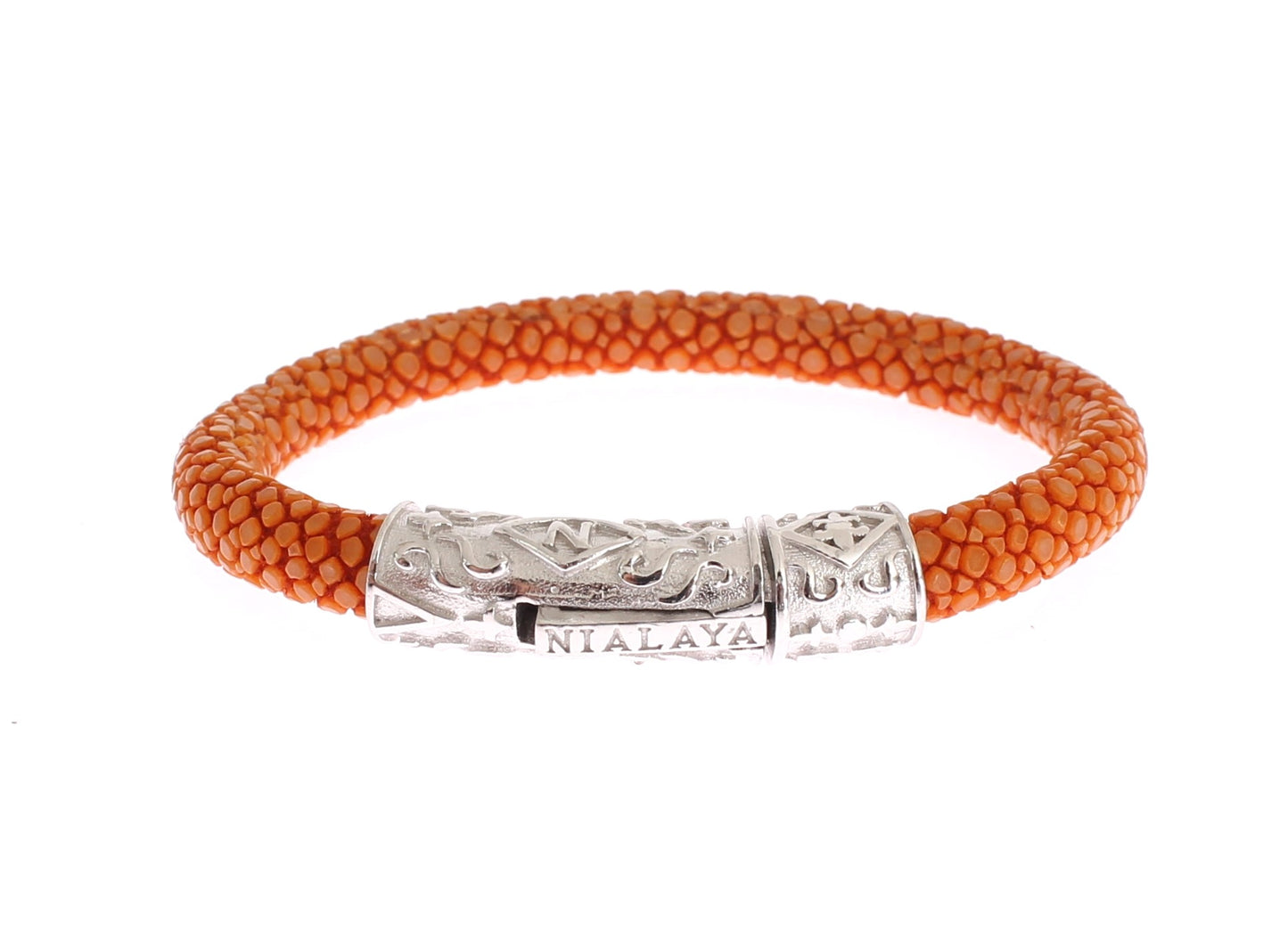Infuse luxury into your accessory collection with this sumptuous Nialaya bracelet, handcrafted in Hollywood, USA. A blend of high-fashion and unique design, this piece is made from the finest 925 silver and features striking orange stingray beads. Its signature lock adds an extra touch of exclusivity, perfect for those seeking a cool, tough-luxe edge to their style, favored by celebrities globally.