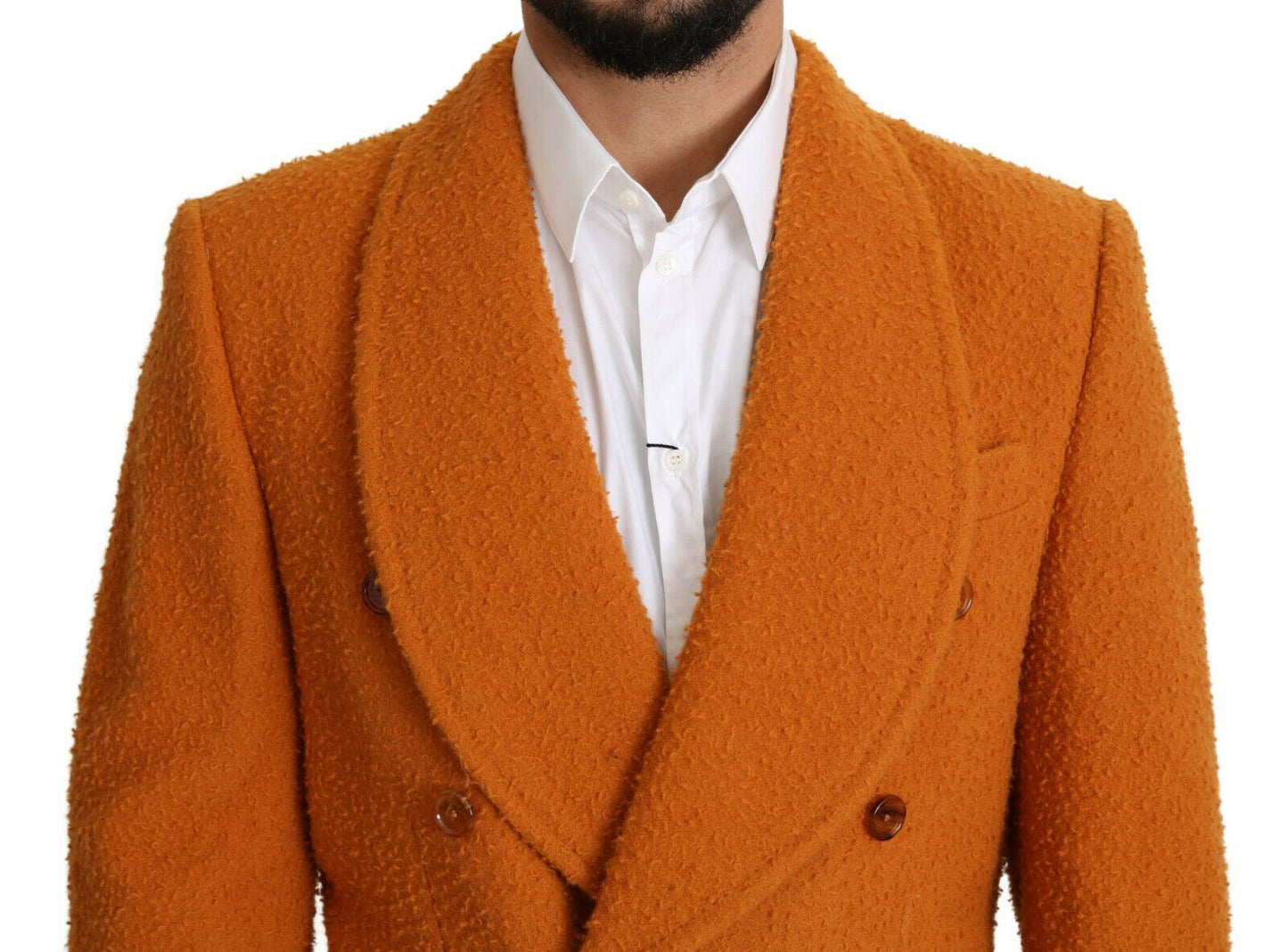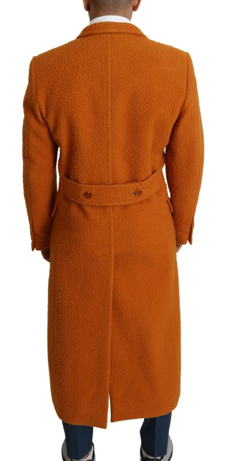 Exude timeless sophistication with this stunning 100% Authentic Dolce & Gabbana trench coat jacket. Its bold orange hue is sure to make a standout statement, while the luxurious combination of pure wool material with a 100% silk lining delivers unmatched comfort and elegance. Perfect for adding a pop of color to your wardrobe, this double-breasted piece is detailed with a sleek button closure and comes with handy front and interior pockets.