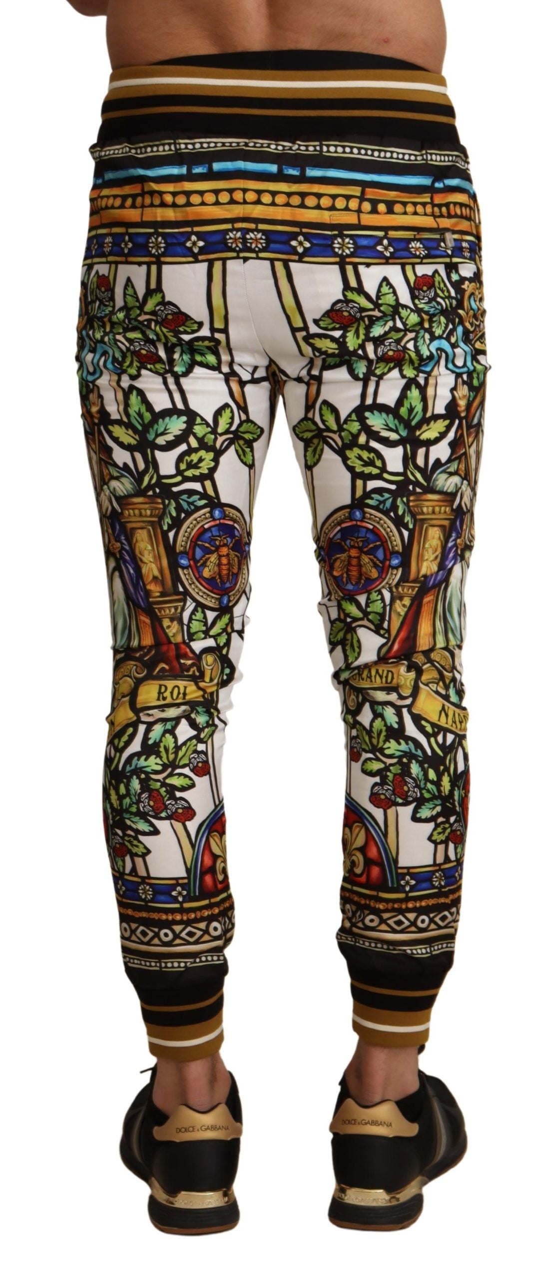Step up your wardrobe with these Dolce & Gabbana casual sweatpants, perfect for adding a pop of color and a touch of luxury. Boasting a vibrant Napoleone print, these sweatpants are crafted with impeccable attention to detail and high craftsmanship in Italy. They offer a comfortable regular fit and come equipped with convenient zipper pockets to keep your essentials secure. An elastic stretch waistband with drawstring ensures the perfect fit for your daily activities, while the logo details subtly showcase the brand’s signature style.