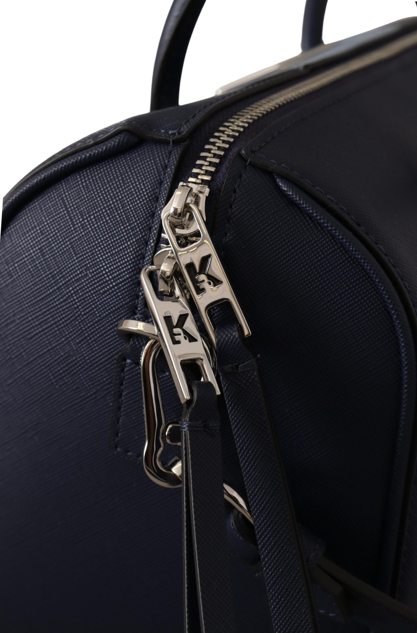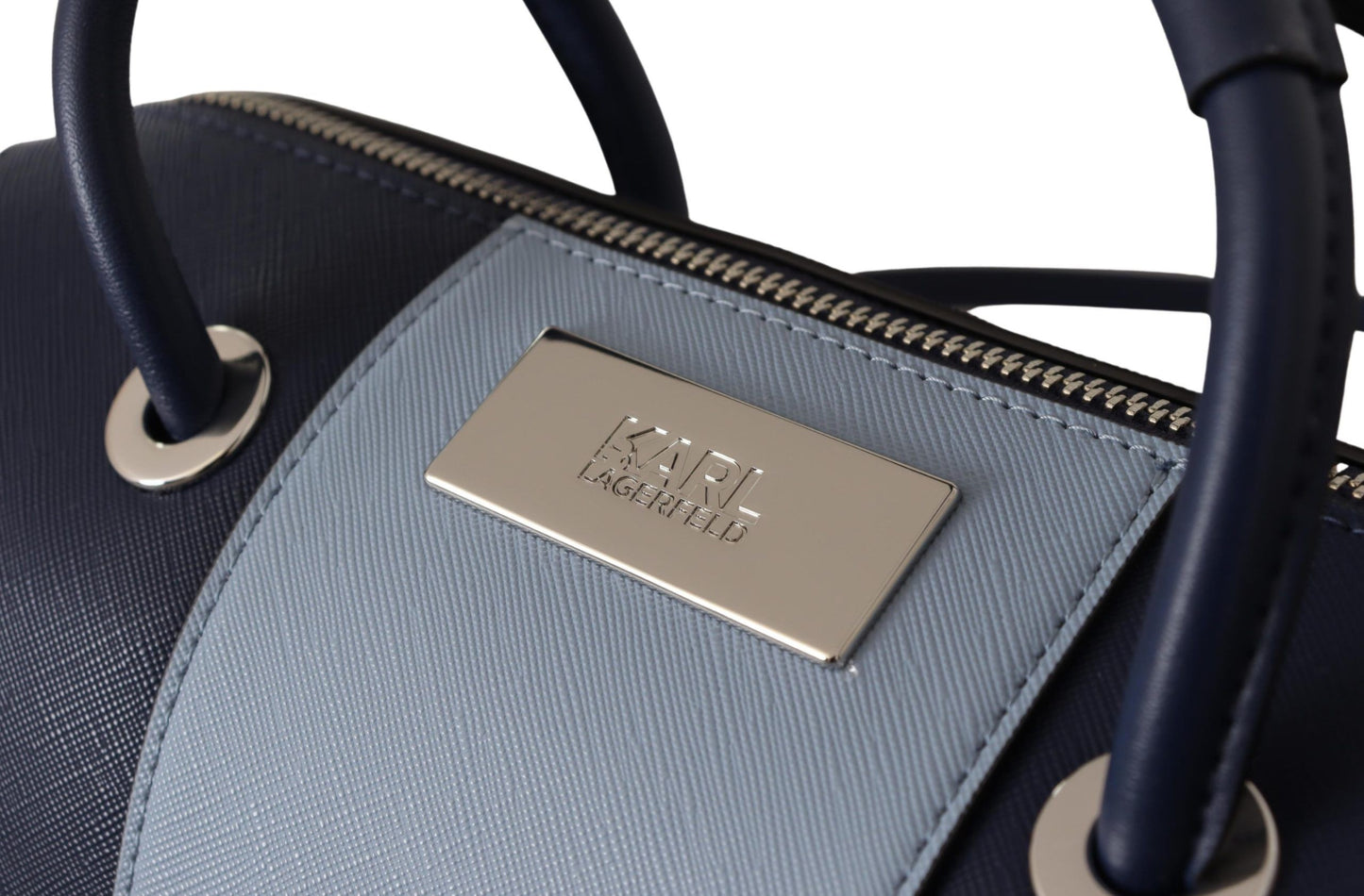 Step into the world of sophistication with this stunning Peacoat Blue Shoulder and Hand Bag from the renowned Karl Lagerfeld. This accessory is not only a luxurious addition to your collection but also a testament to impeccable style and functionality. The chic silver-toned hardware complements the gorgeous polyurethane construction, making it a perfect match for any outfit. Organize your essentials with ease thanks to the main compartment, interior zip pocket, and slip pockets. Featuring a zip closure and available with both removable and adjustable shoulder strap, this bag offers versatile wear as a shoulder bag or a crossbody, adapting to your style needs seamlessly.